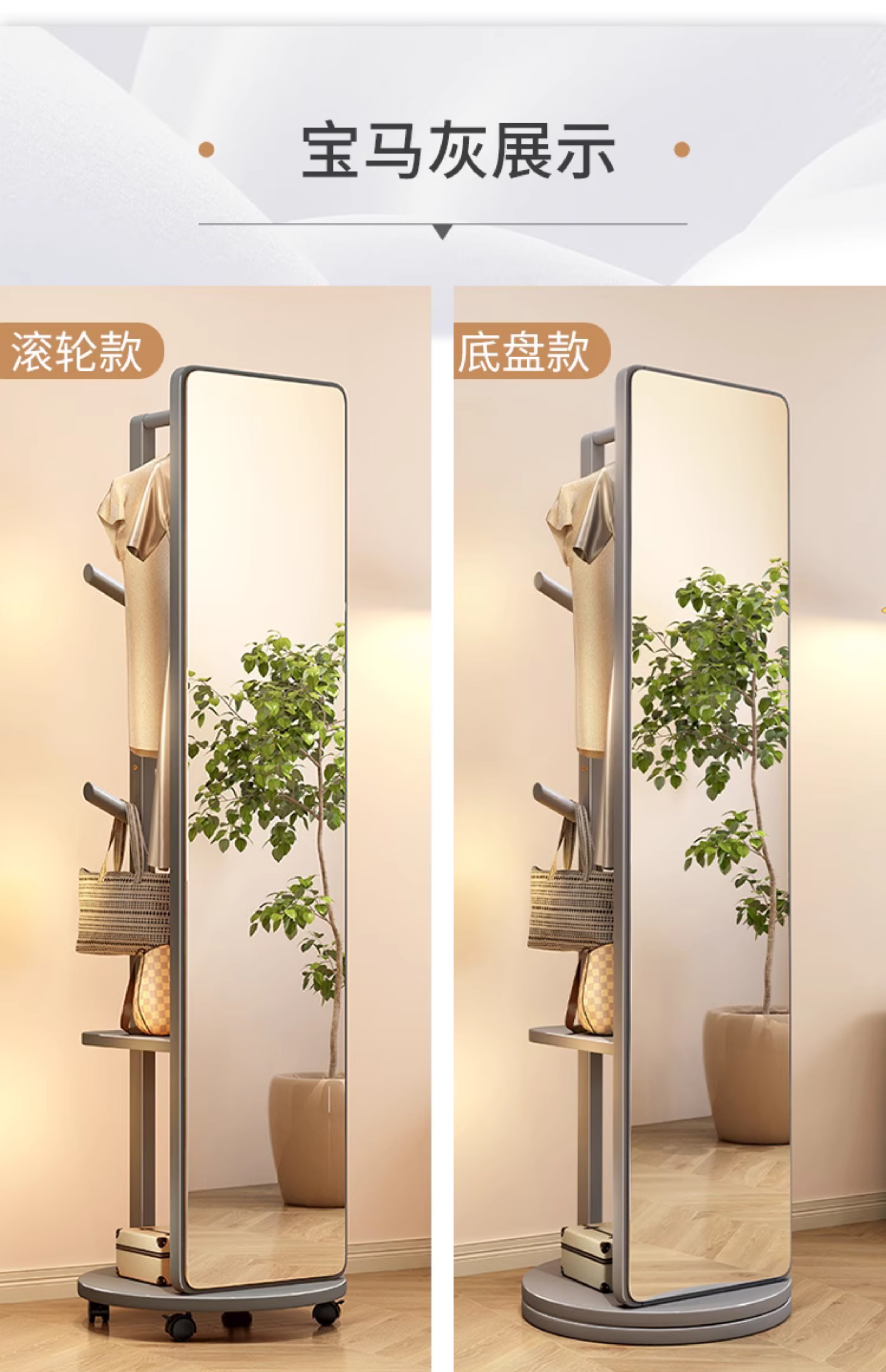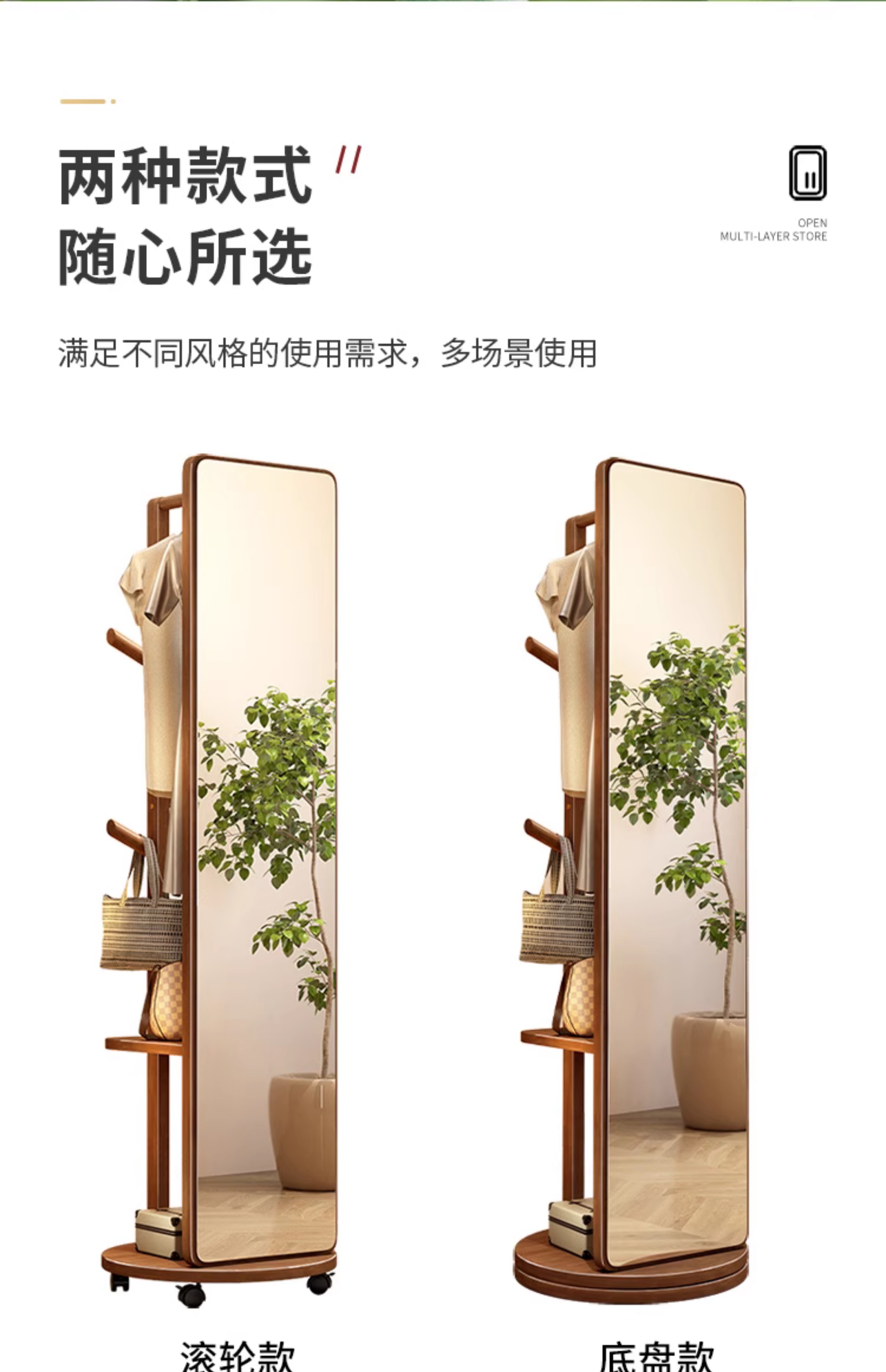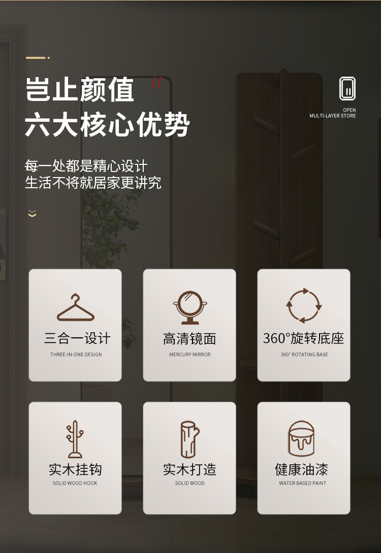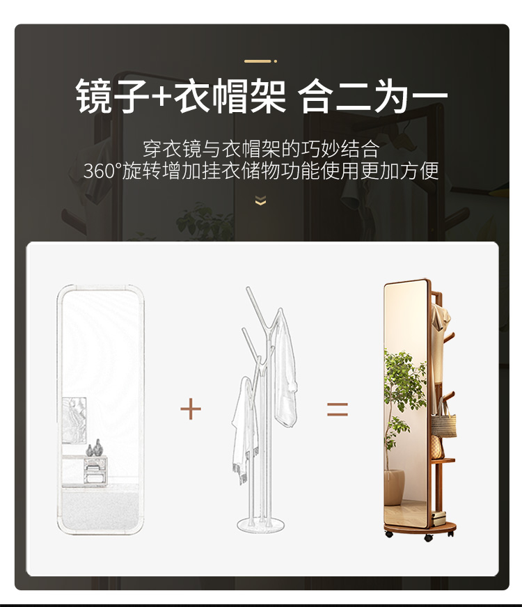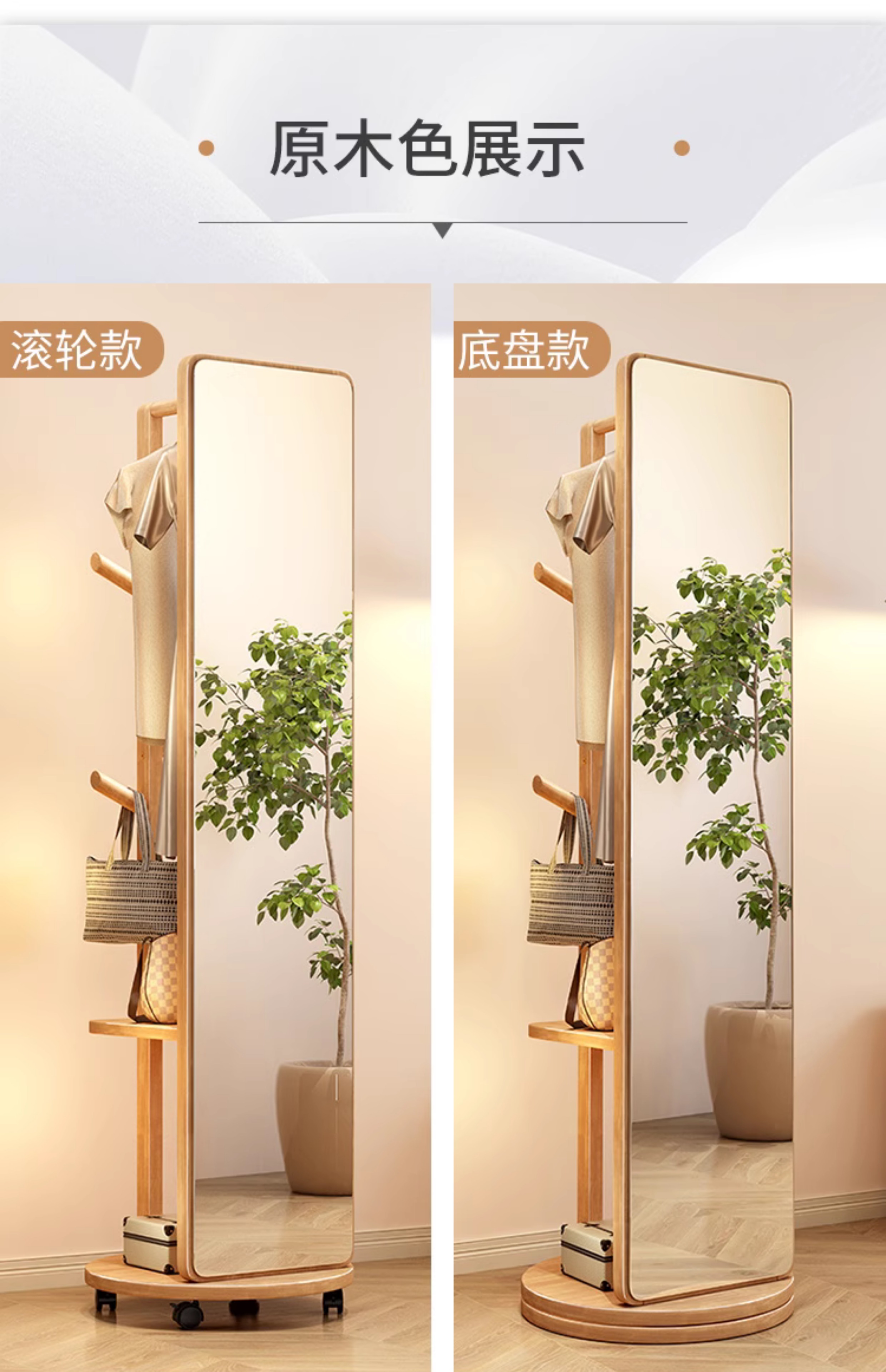 외투와 후드 기능이있는 거울 통합 모바일 코트 랙 걸이 침실 이끼 다기능 솔리드 우드 옷걸이스토어 가기