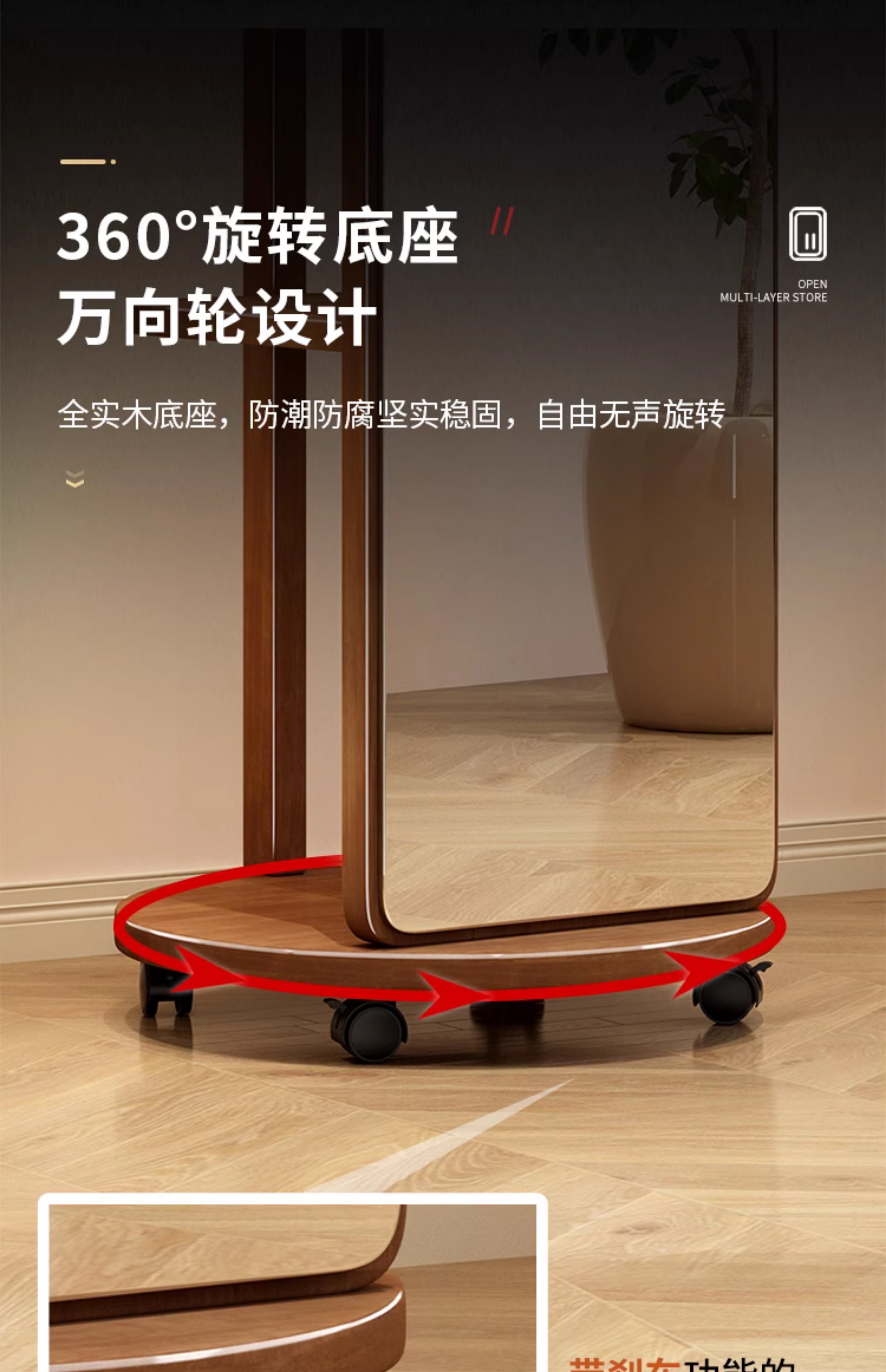 • B28#[월넛 컬러 더블 레이어] 섀시 - 회전 가능 - 직경 40CM