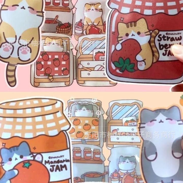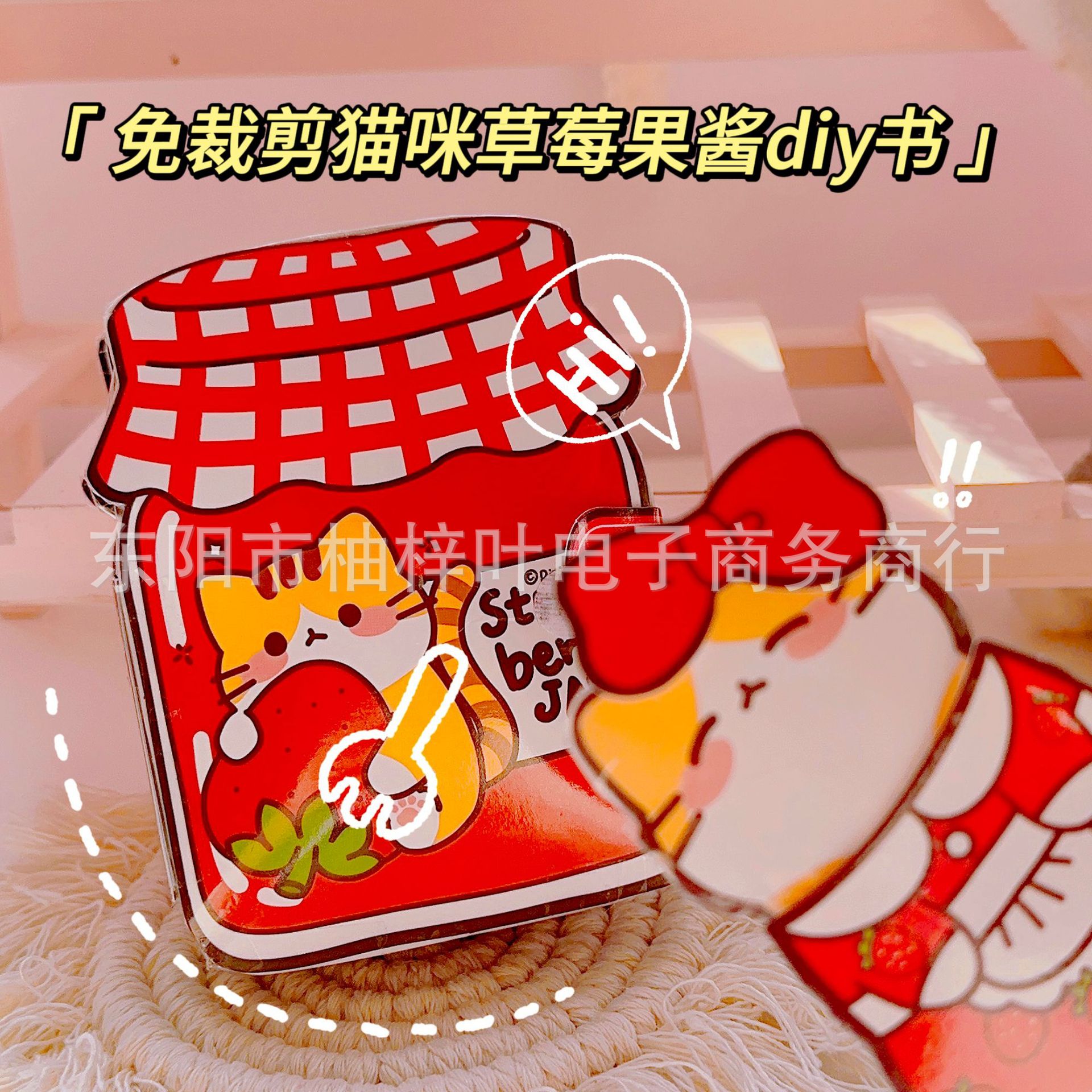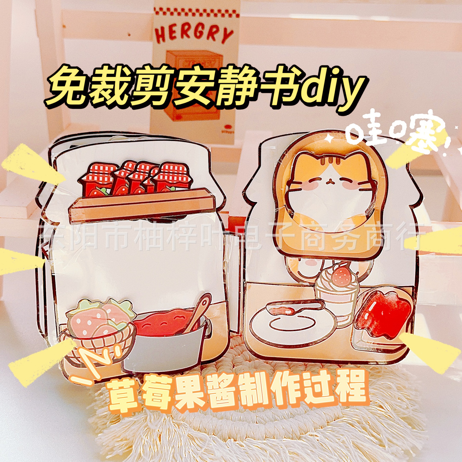 컷 프리 딸기 잼 고양이 조용한 책 핀치 음악 DIY 소재 어린이 소형 수제 원피스 업 게임 장난감스토어 가기