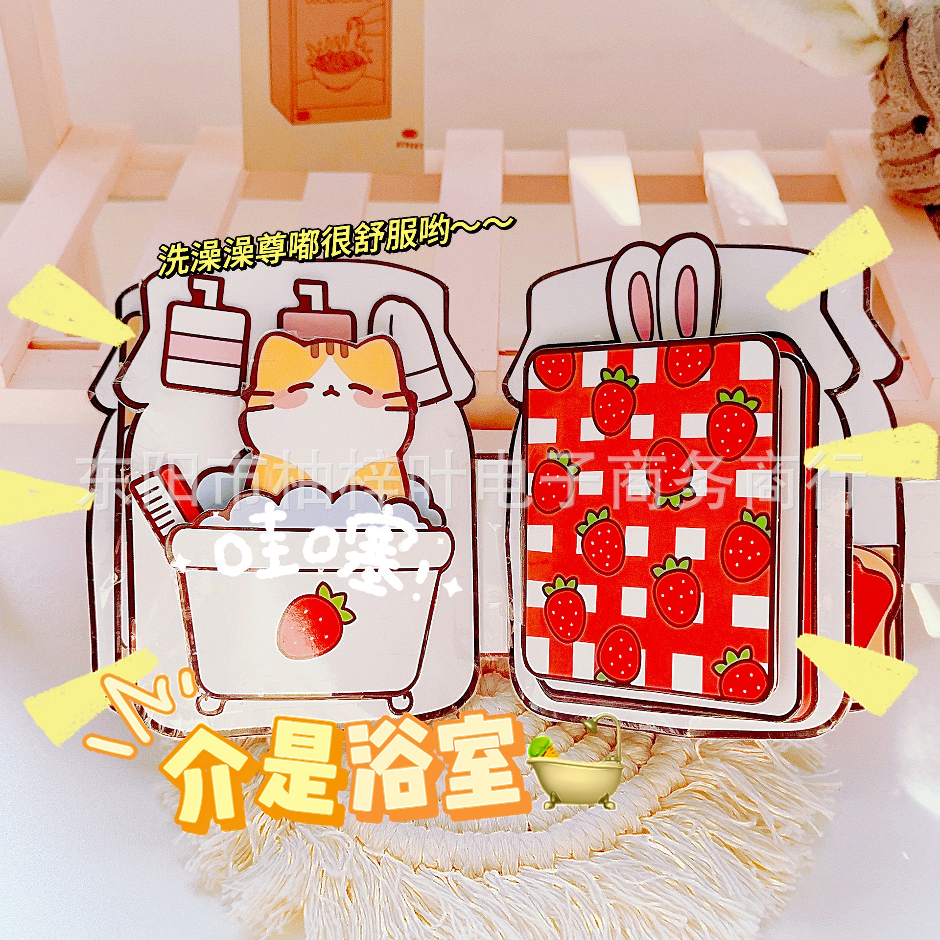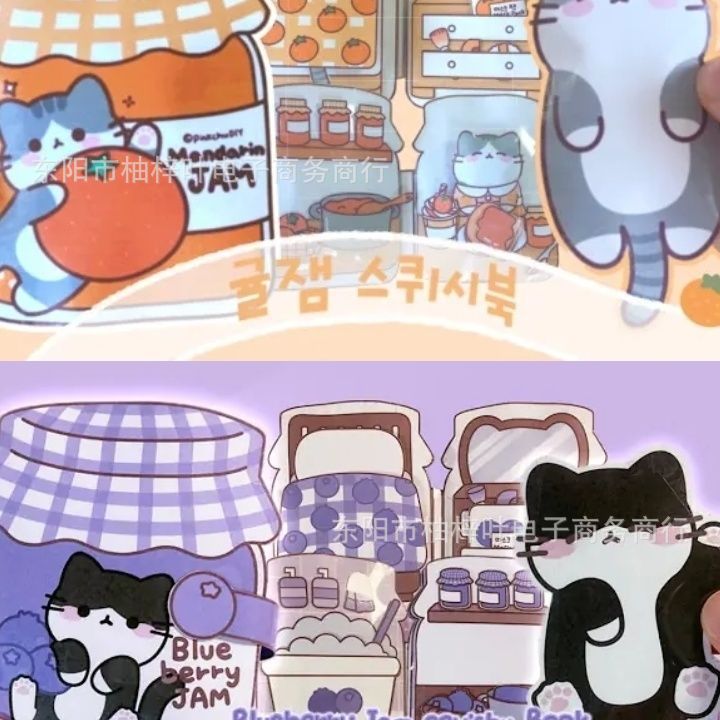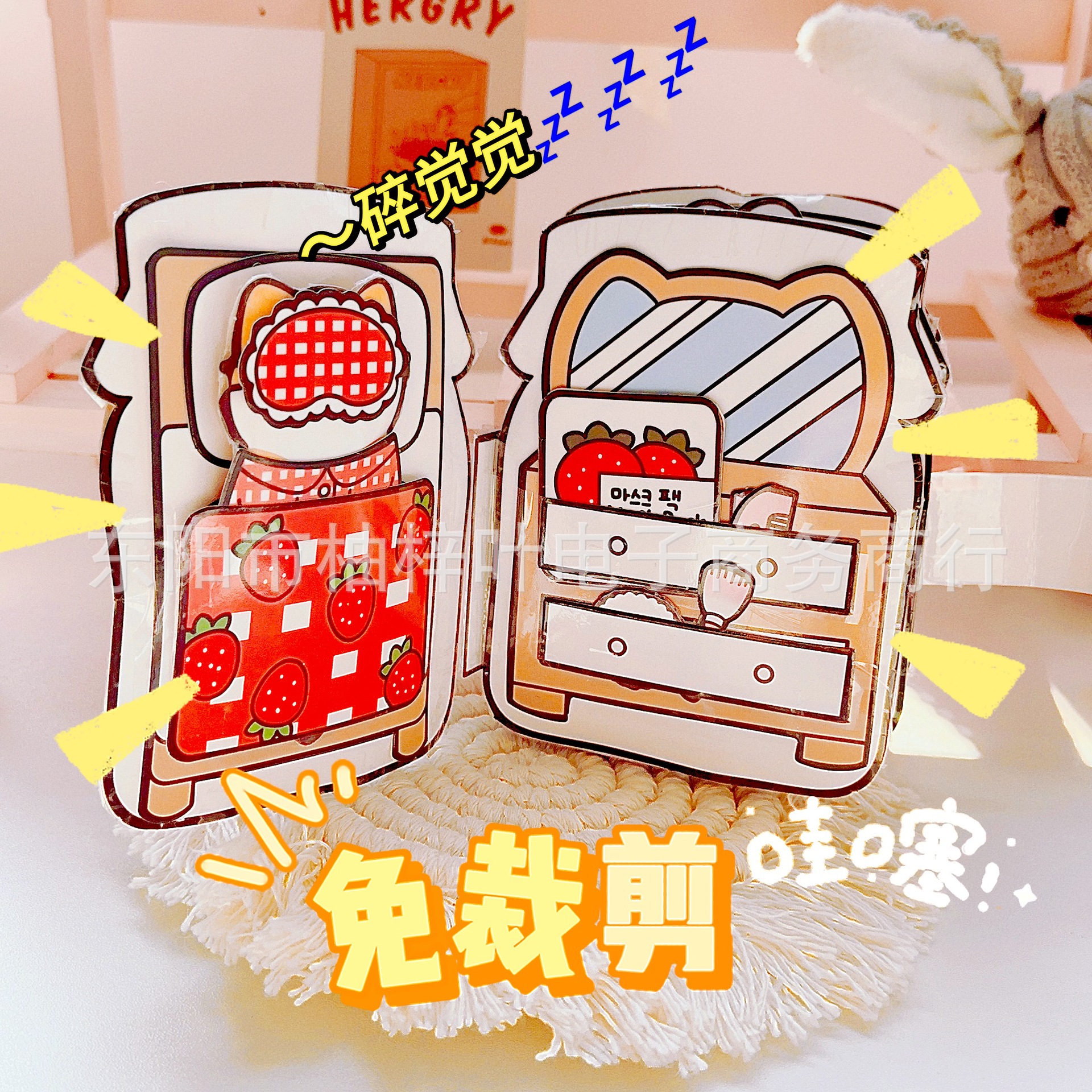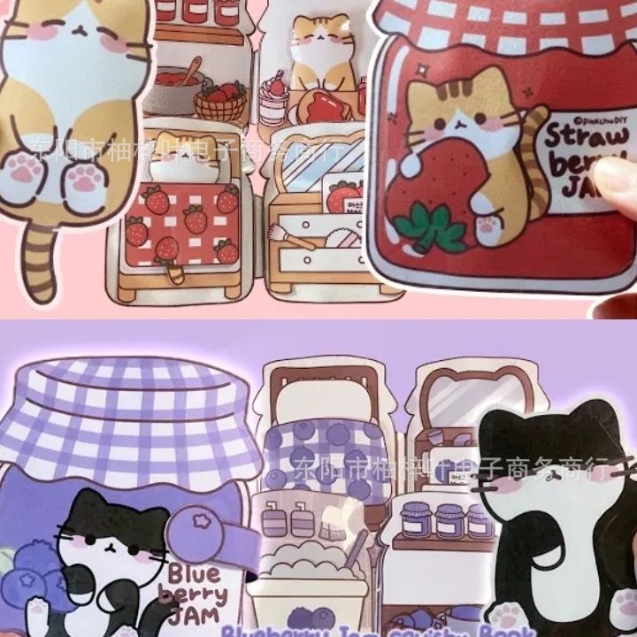 컷 프리 딸기 잼 고양이 조용한 책 핀치 음악 DIY 소재 어린이 소형 수제 원피스 업 게임 장난감스토어 가기