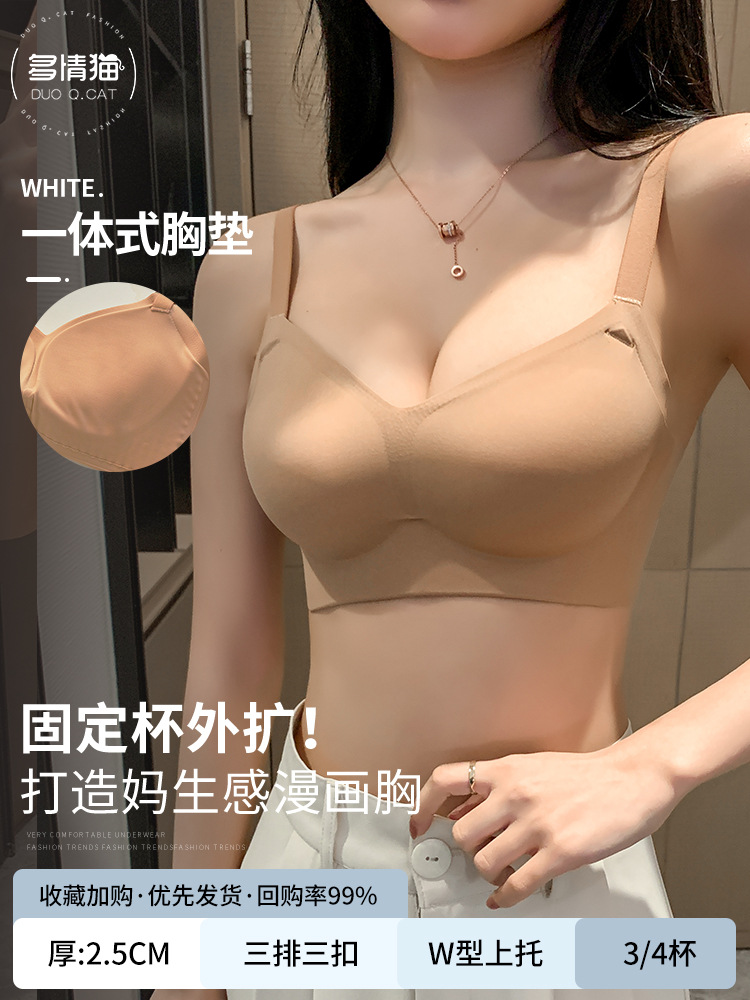 열정적 인 고양이 만화 외장 확대 속옷 여성의 작은 가슴 플랫 가슴 푸시 업 스틸 반지 없음 큰 고정 컵 브래지어스토어 가기