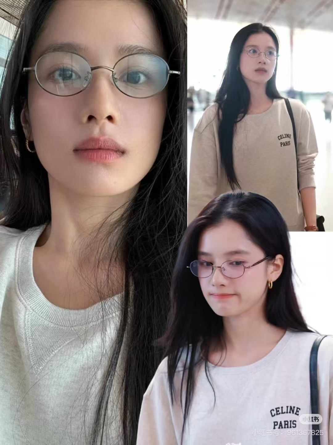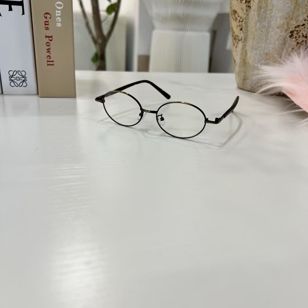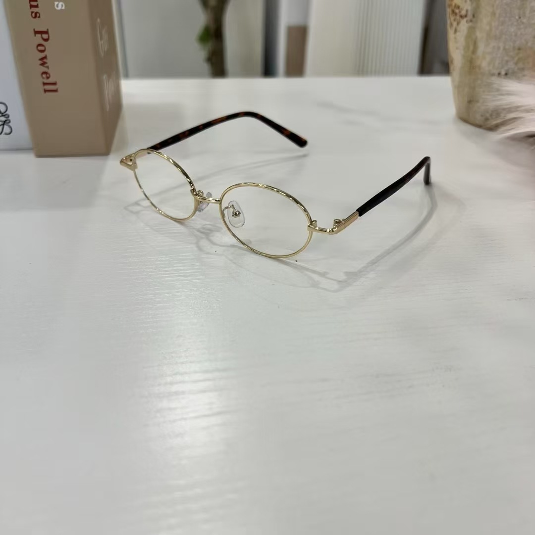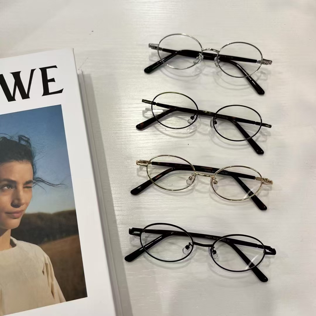 장징이 같은 스타일 한국 신경 작은 프레임 금속 안경 레트로 골드 실크 아트 근시 타원형 평면 안경스토어 가기