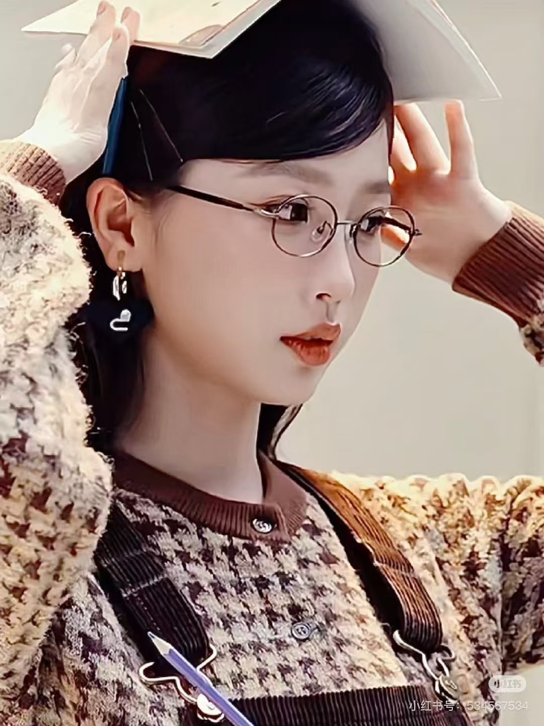 장징이 같은 스타일 한국 신경 작은 프레임 금속 안경 레트로 골드 실크 아트 근시 타원형 평면 안경