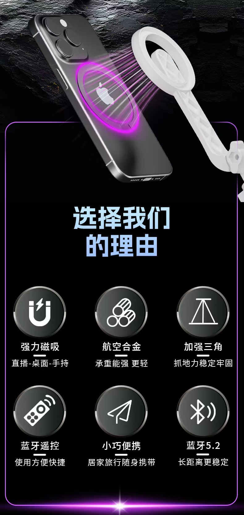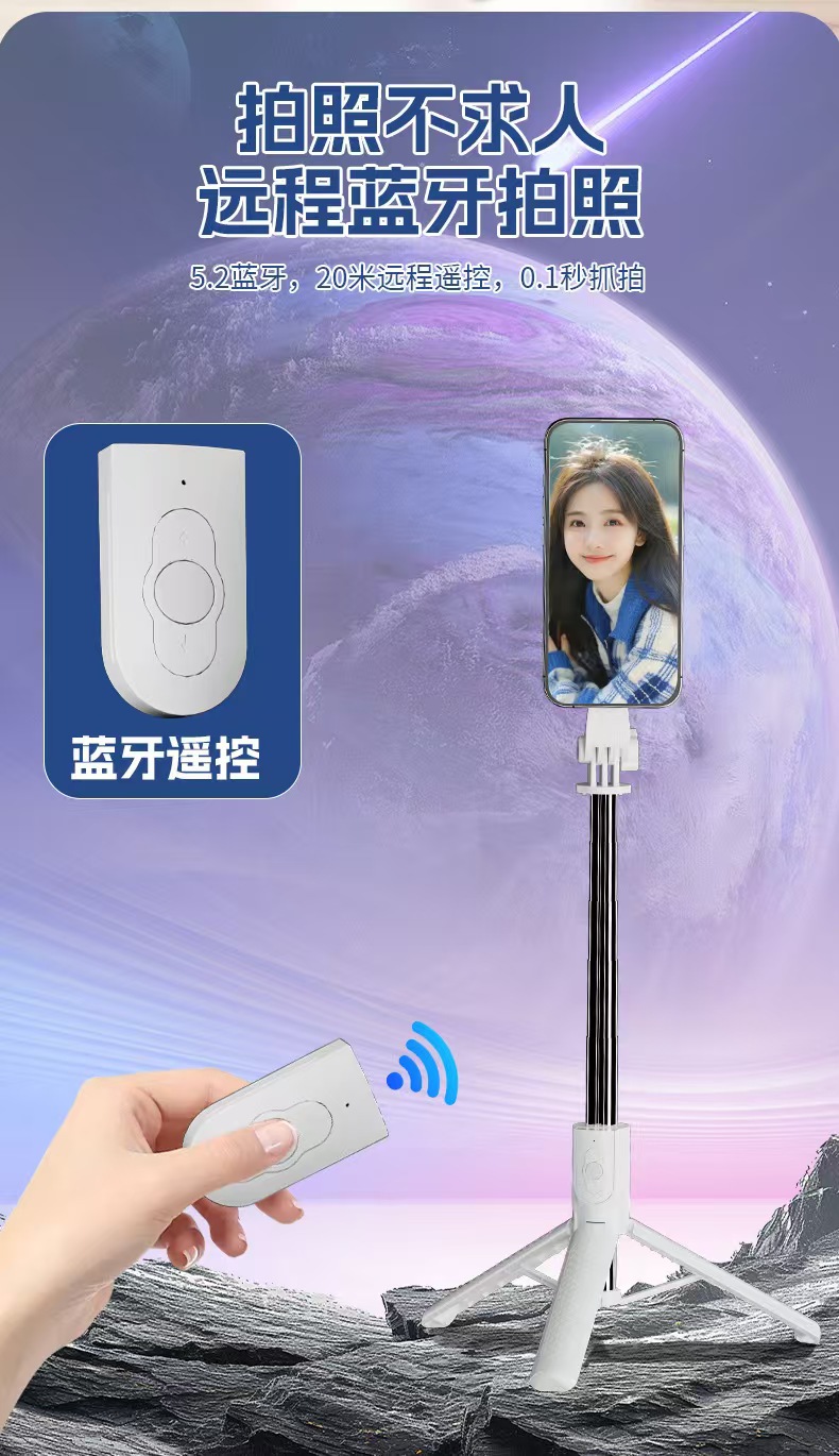 超迷你自拍杆蓝牙遥控一体落地三脚架便携式自拍补光多功能助拍器