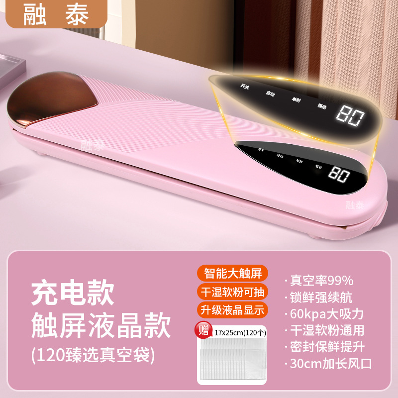 • 핑크 LCD 충전 + 듀얼 펌프로 높은 흡입력 + 공기 누출 없음 + 120 봉지 + 터치 스크린