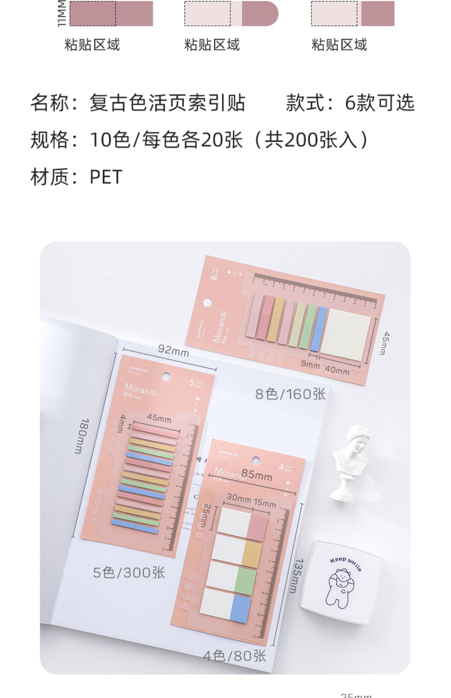 애완 동물 레트로 Morandi 느슨한 잎 색인 노트 포스트잇 노트 작은 신선한 핸드 테이프스토어 가기