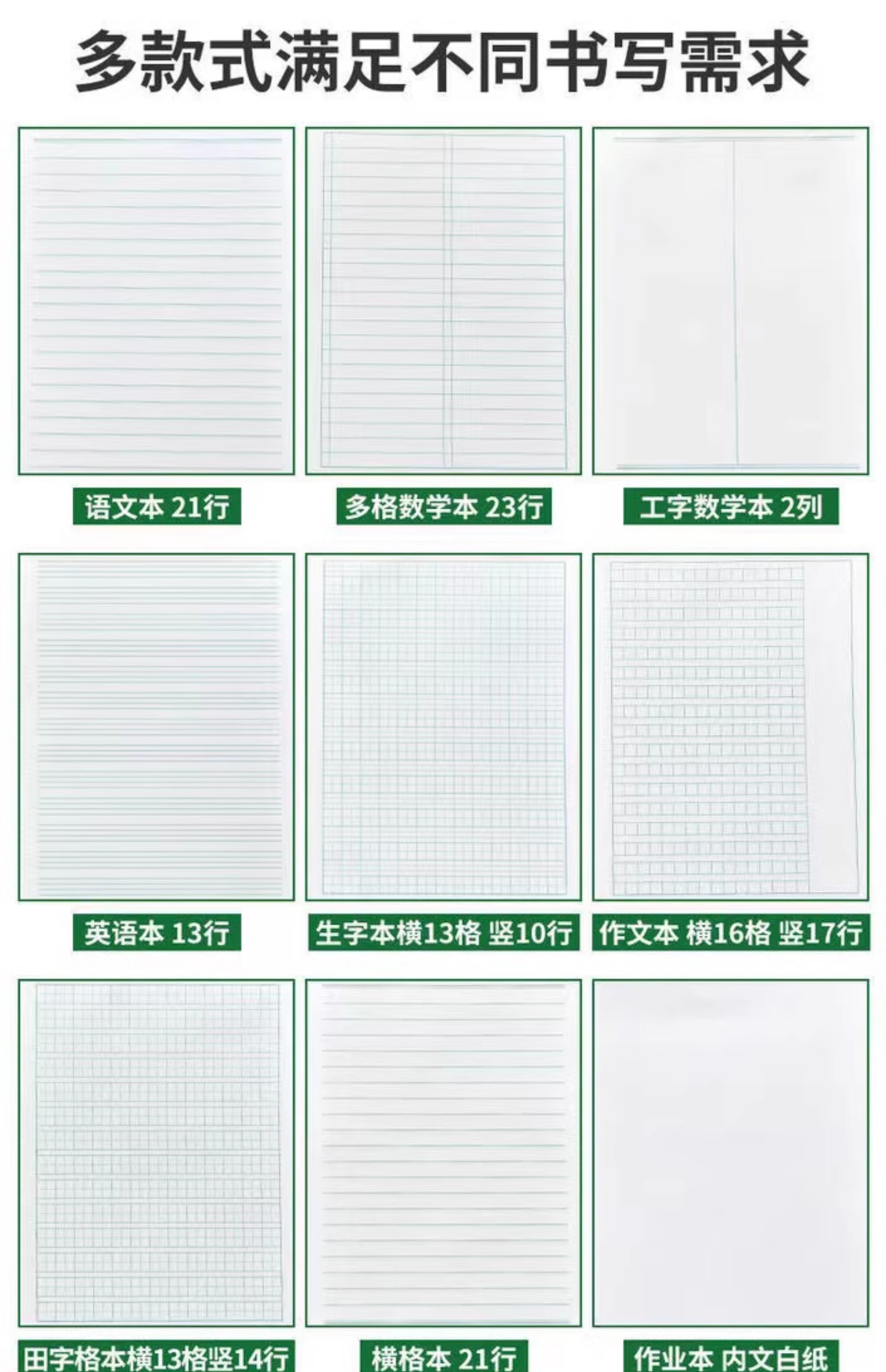 16k 가정 노트북 초등 학생을위한 특수 언어 텍스트 수평 격자 영어 수학 구성 텍스트 Tian Zi Ge 교과서스토어 가기