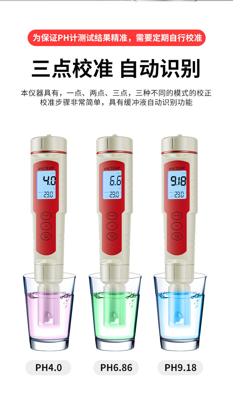 • [전문 컬러 스크린 백라이트 충전 모델] 해상도 [0.01ph] 산 및 알칼리 값 테스트 펜 + 보정액 3병