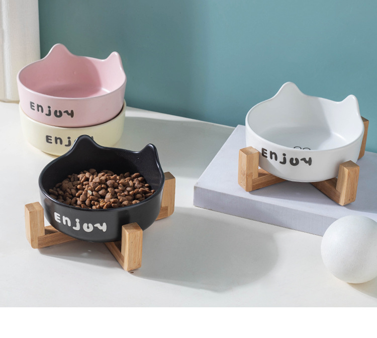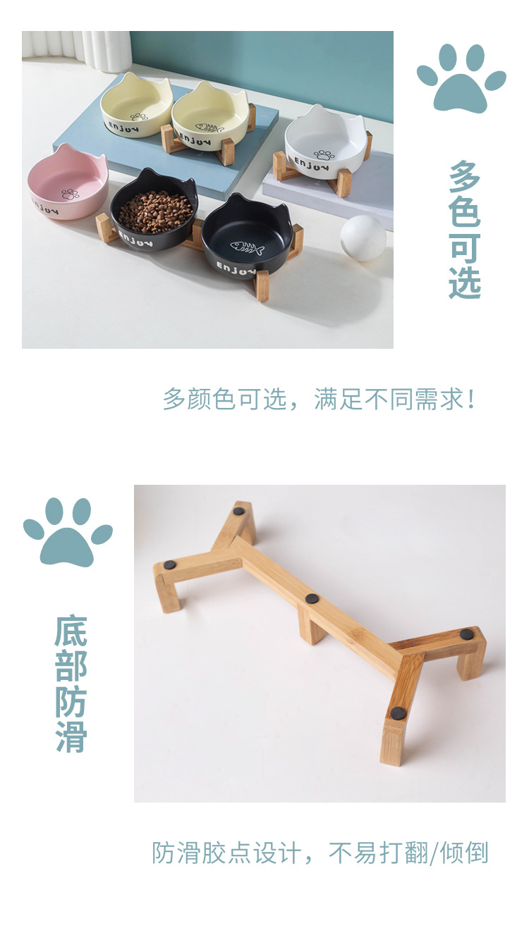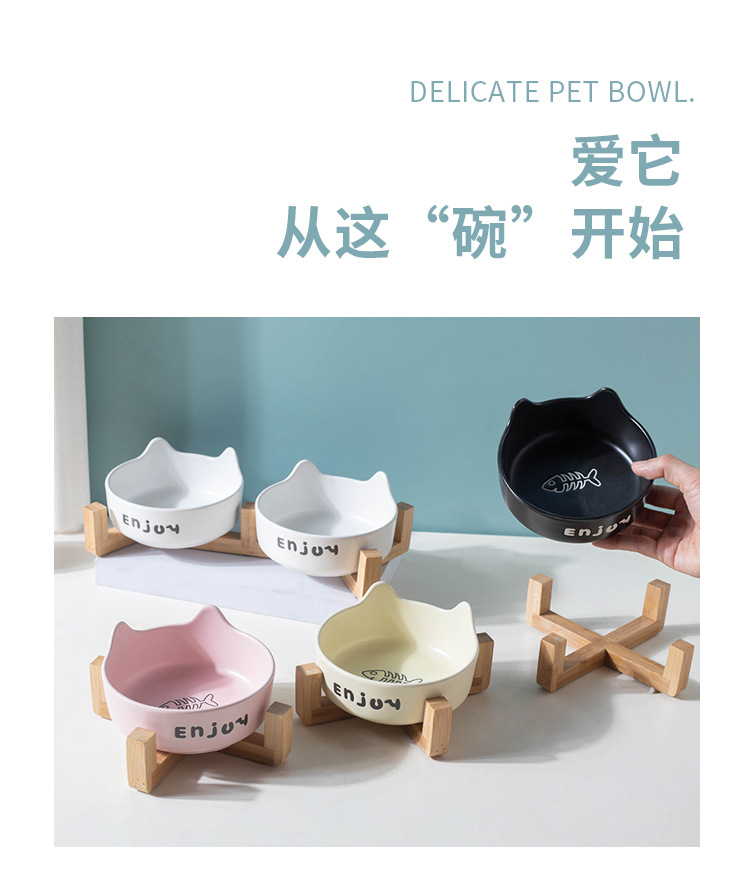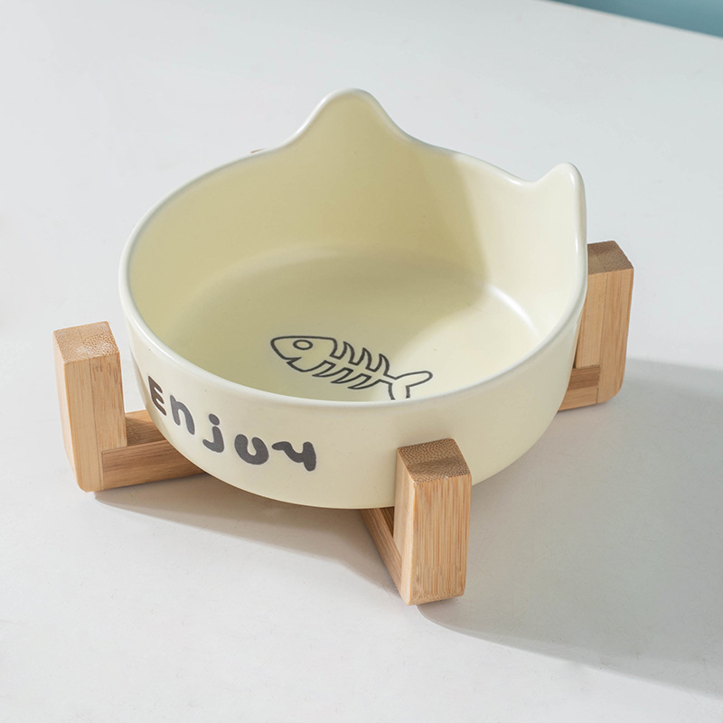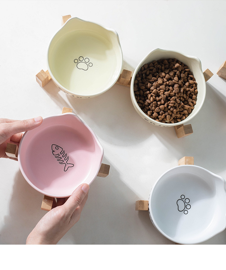 • .✷◈♤♤◈✷고양이 귀 노란 고양이 발톱 단일 그릇 + 단일 그리드 나무 스탠드✷◈♤♤◈✷