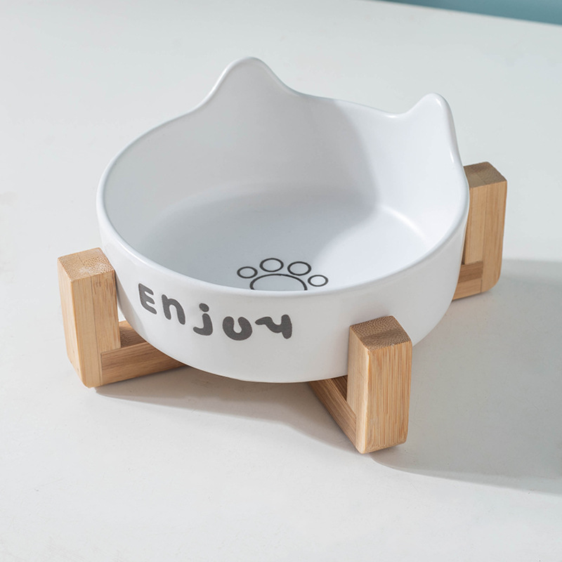 • ✷◈♤♤◈✷고양이 귀 흰색 고양이 발톱 단일 그릇 + 단일 그리드 나무 스탠드✷◈♤♤◈✷