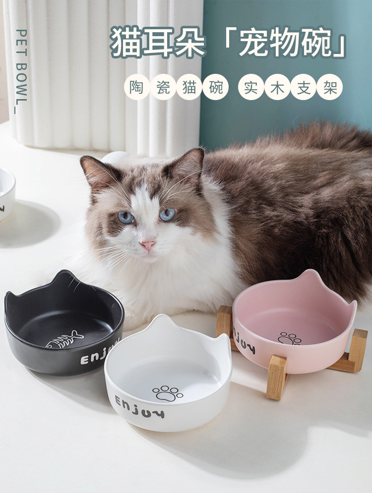 • .✷◈♤♤◈✷고양이 귀 흰색 고양이 발톱 단일 그릇 + 단일 그리드 나무 스탠드✷◈♤♤◈✷