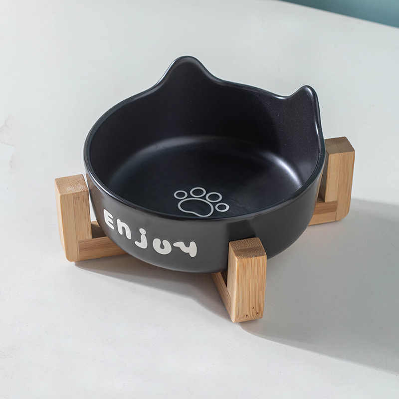 • ✷◈♤♤◈✷고양이 귀 검은 고양이 발톱 단일 그릇 + 단일 그리드 나무 스탠드✷◈♤♤◈✷