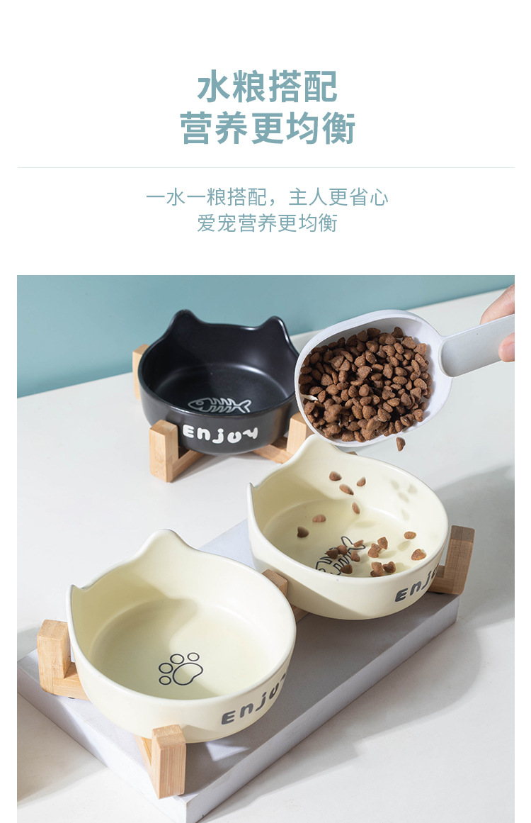 • .✷◈♤♤◈✷고양이 귀 검은 고양이 발톱 생선 뼈 이중 그릇 + 이중 격자 나무 스탠드✷◈♤♤◈✷