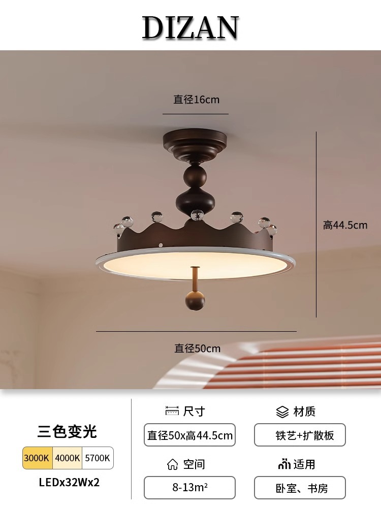 침실 방 천장 램프 고대 미국 복고풍 크라운 마스터 침실 연구 2024 새로운 전체 스펙트럼 눈 보호 램프스토어 가기