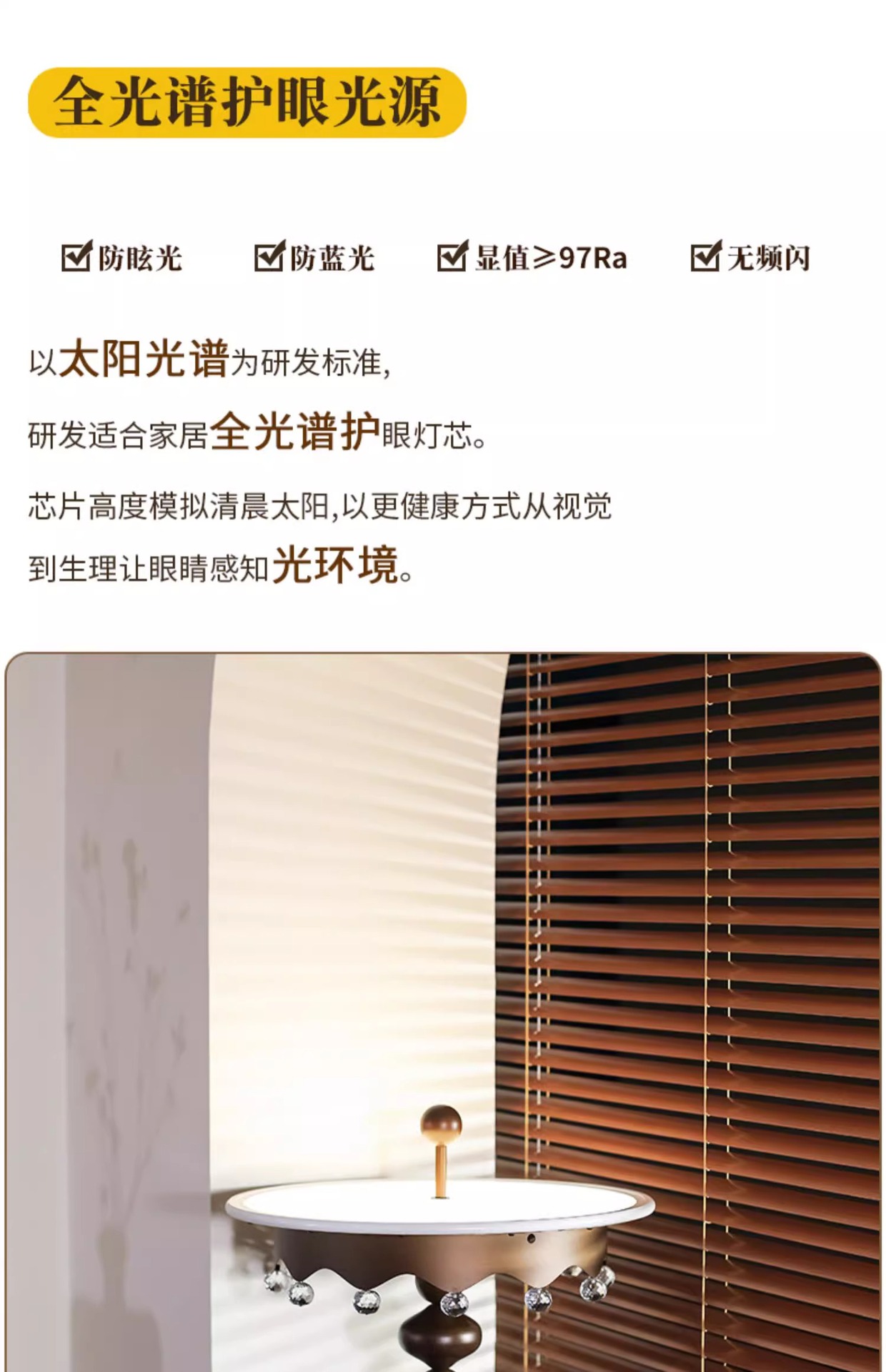 침실 방 천장 램프 고대 미국 복고풍 크라운 마스터 침실 연구 2024 새로운 전체 스펙트럼 눈 보호 램프