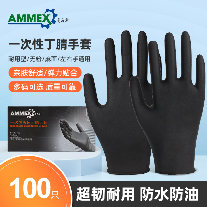 Amars 블랙 니트릴 장갑 문신 자동 수리 뷰티 살롱 오일 방지 방수 미끄럼 방지 일회용 니트릴 장갑