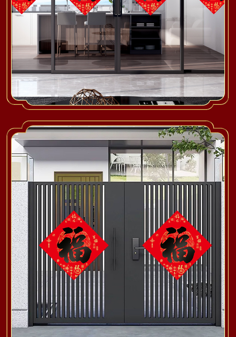 ⇡ 서예 검정색 문자 Fu 문 스티커 2025 Fu 문자 스티커는 햇빛에 강하고 퇴색하지 않습니다. Baifu Picture 봄 축제 문 장식