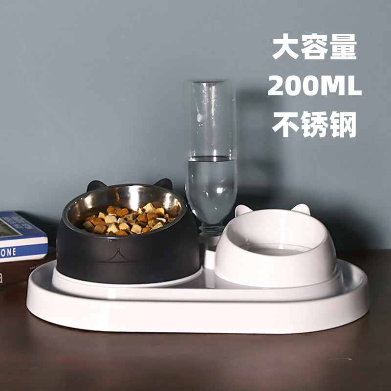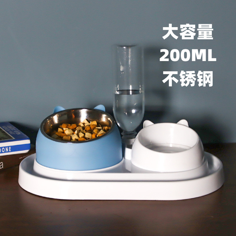 ✅ 인터넷 유명 고양이 모양 스테인리스 애완동물 고양이 밥그릇 이중 그릇 자동 급수기 고양이 그릇 물이 묻지 않는 밥그릇 개 밥그릇스토어 가기
