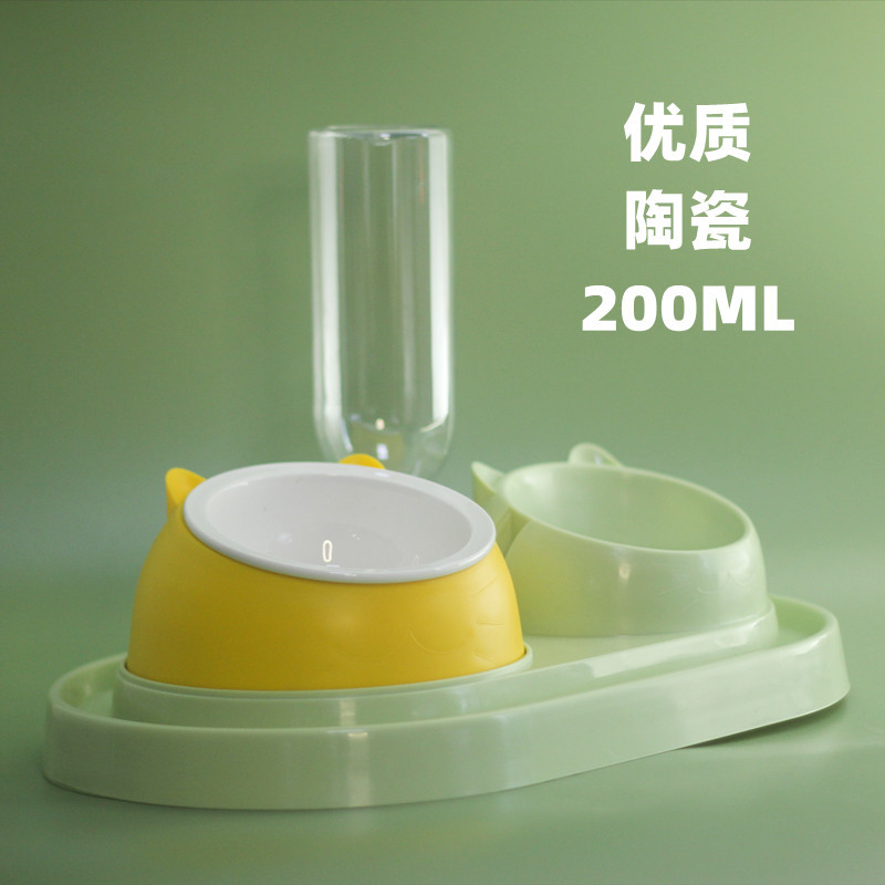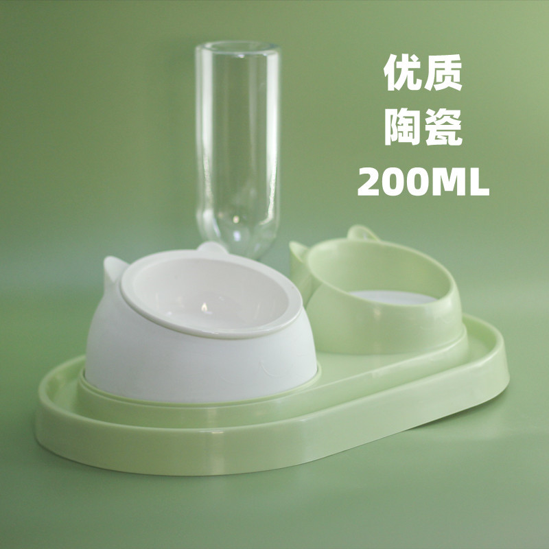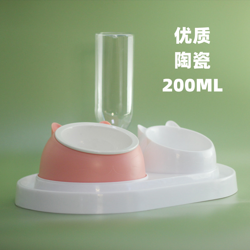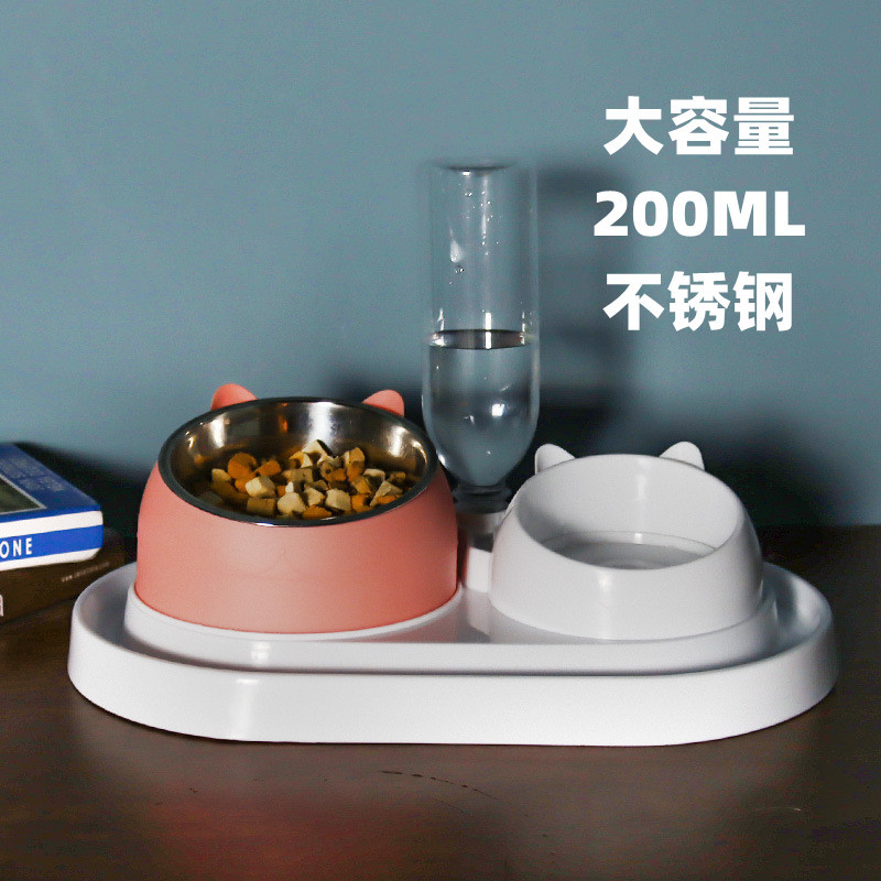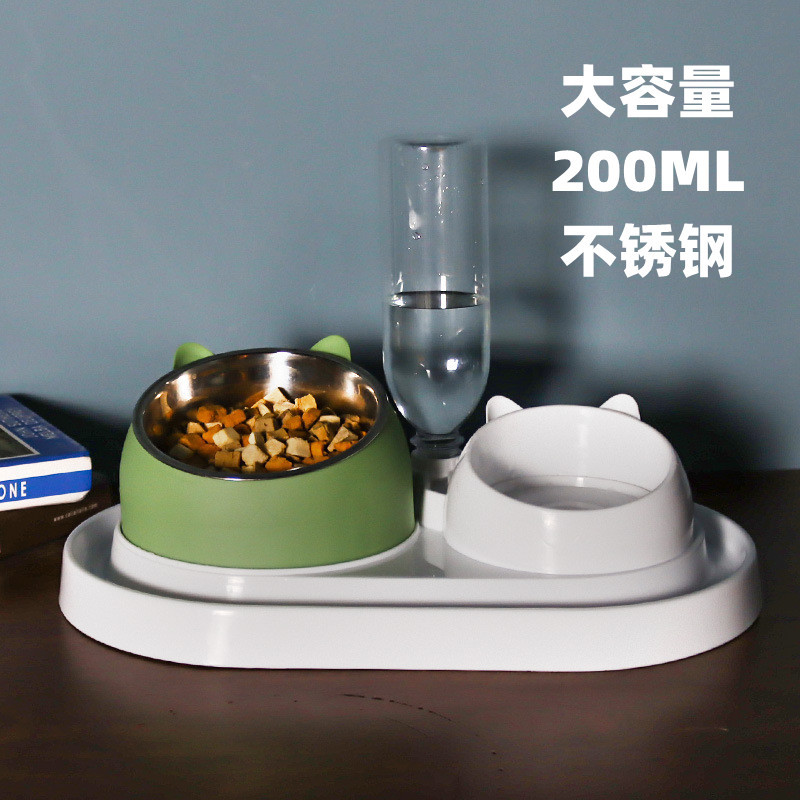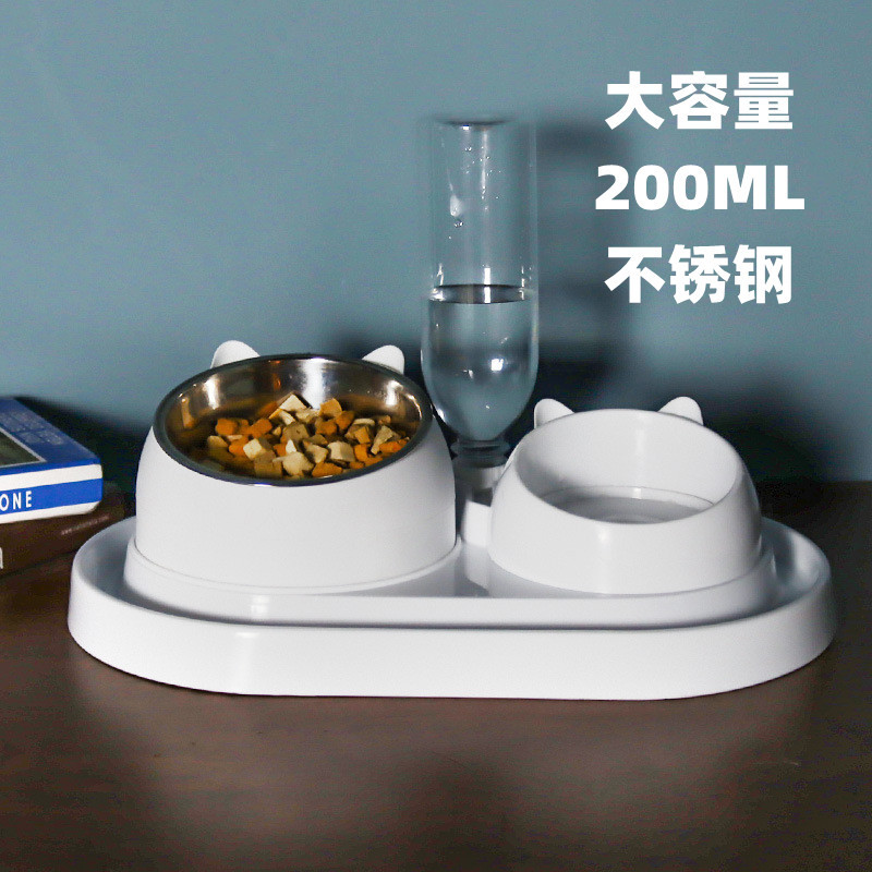 ✅ 인터넷 유명 고양이 모양 스테인리스 애완동물 고양이 밥그릇 이중 그릇 자동 급수기 고양이 그릇 물이 묻지 않는 밥그릇 개 밥그릇