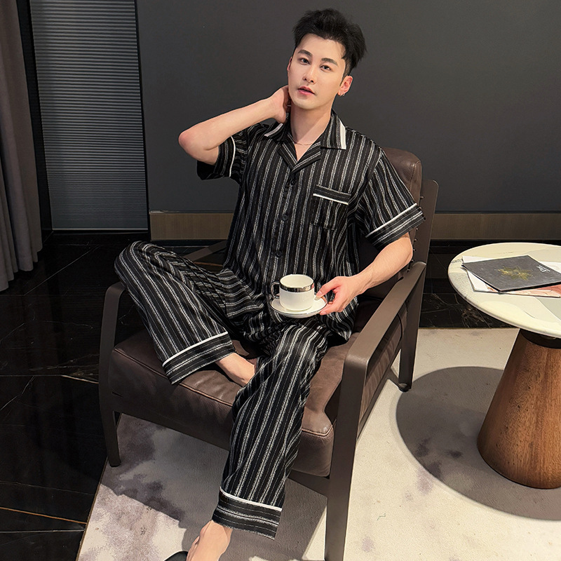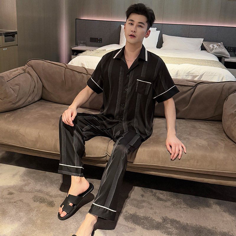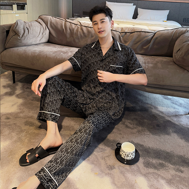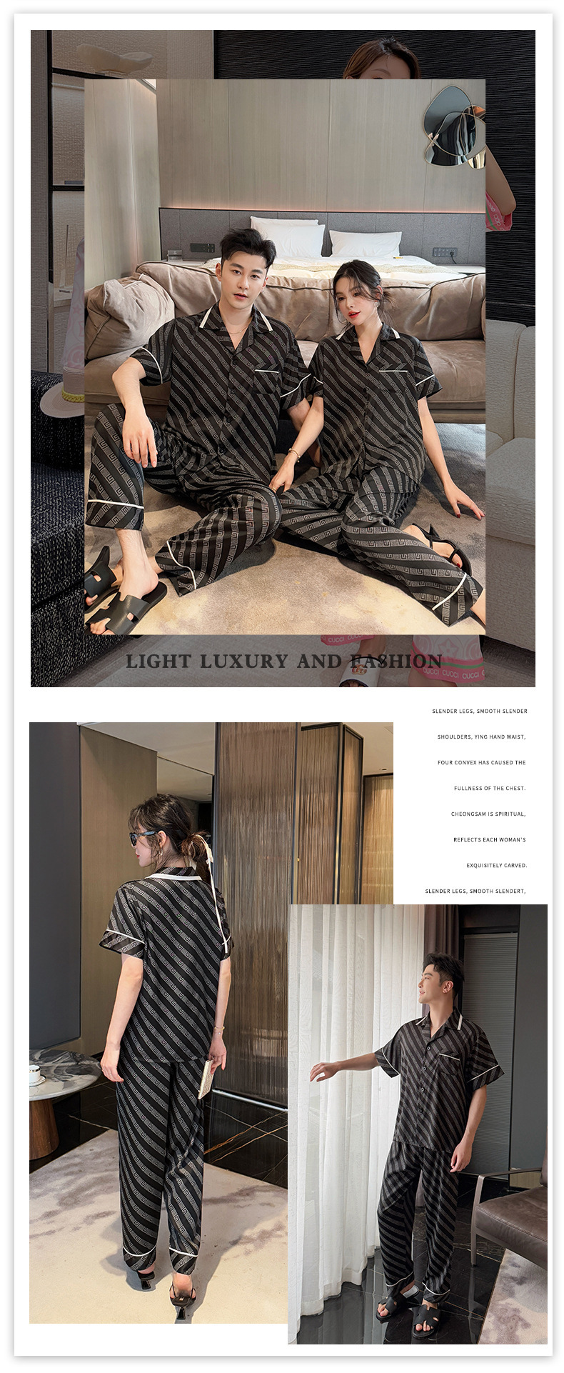 源头厂货2025情侣冰丝睡衣女春秋季短袖大码翻领开衫套装网红直播
