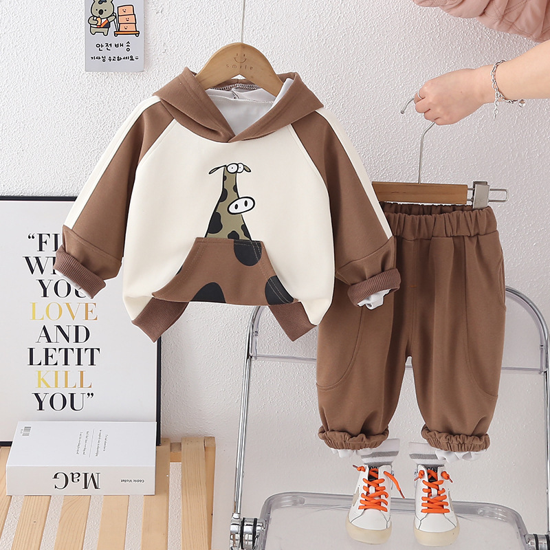 어린이 착용 남성 봄 가을 세트 2025 새로운 스타일 아기 봄 만화 후드 착용 캐주얼 투피스 세트스토어 가기
