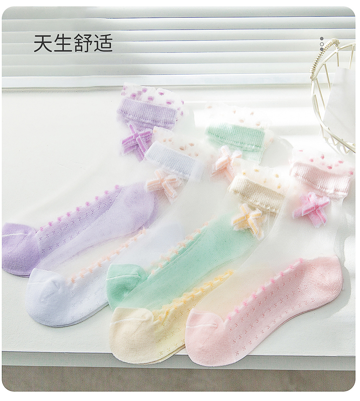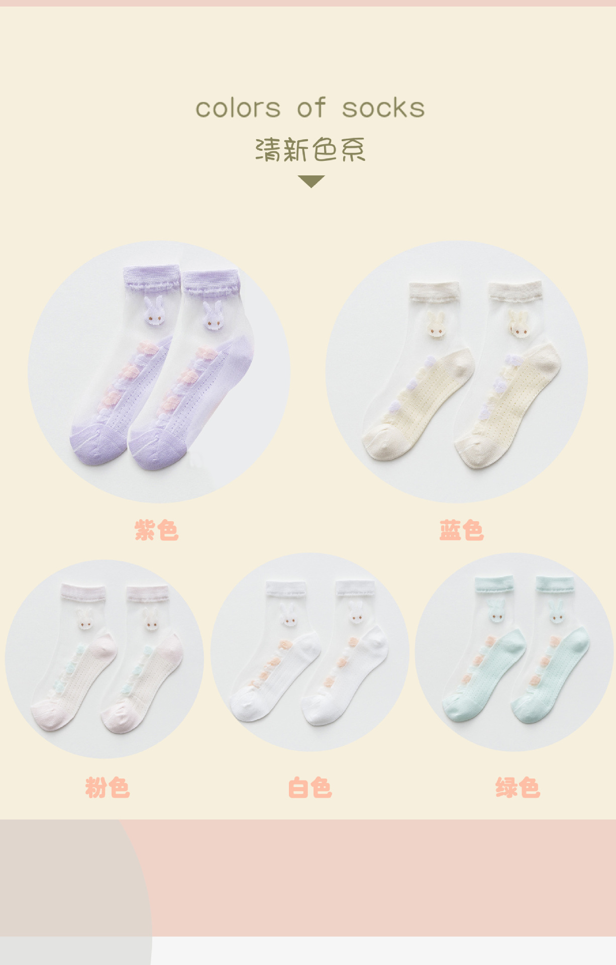 2025 작은 토끼 어린이 양말 얇은 5 성급 크리스탈 입 아기 양말 큰 어린이 마카롱 컬러 튜브 양말 도매