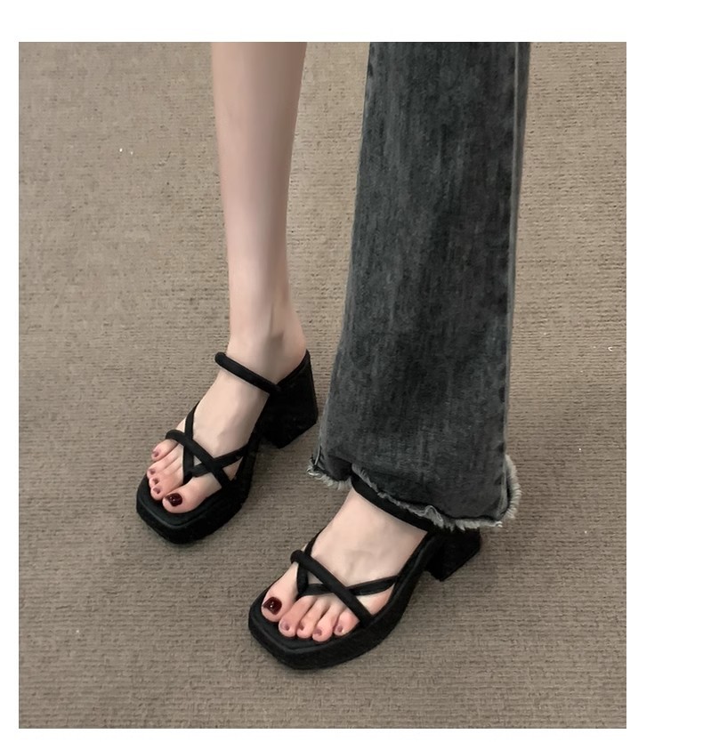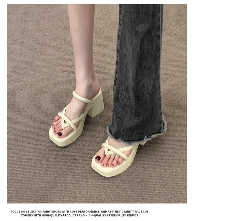 2024 작은 슬리퍼 여성 여름 새로운 스타일 두꺼운 힐 정제 높이 증가 두꺼운 바닥 프랑스 하이힐 슬리퍼스토어 가기