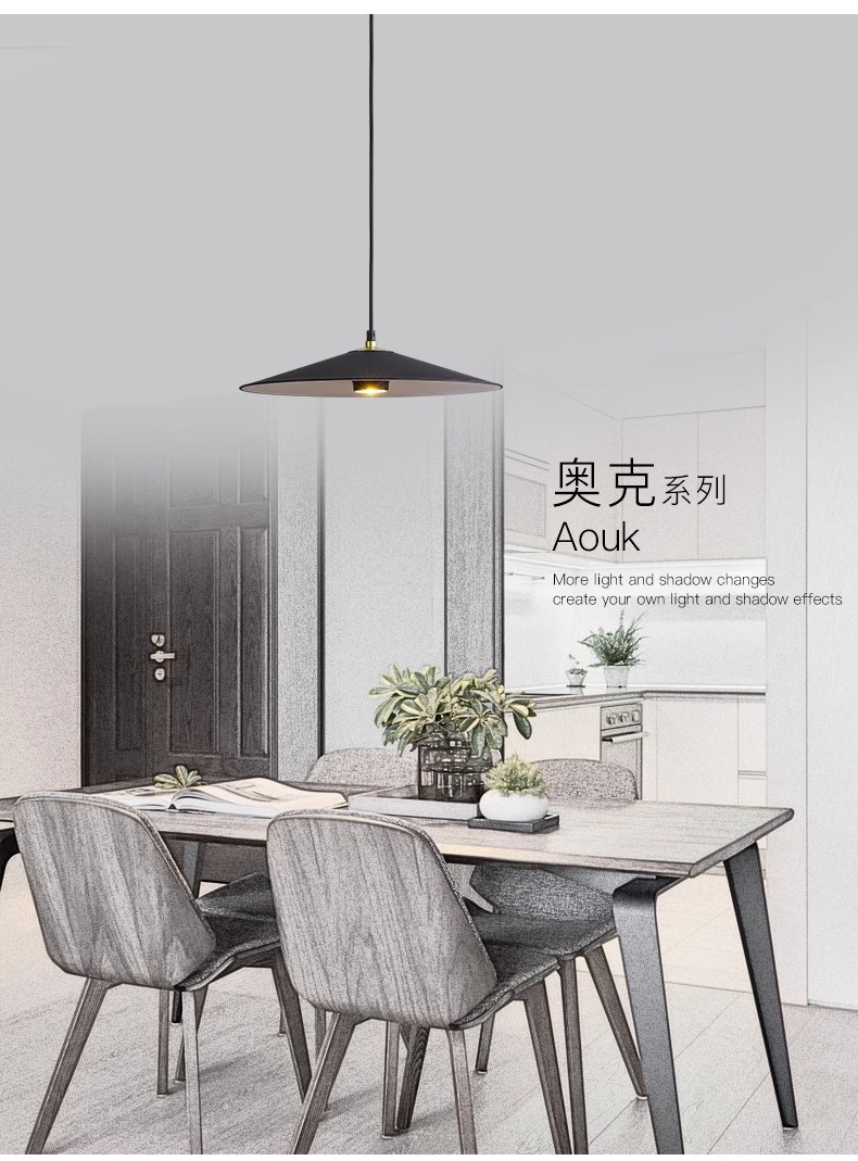 2024 새로운 미니멀리스트 레스토랑 샹들리에 현대적인 단순한 성격 창조적 인 싱글 헤드 COB 식탁 라운드 비행 접시 샹들리에