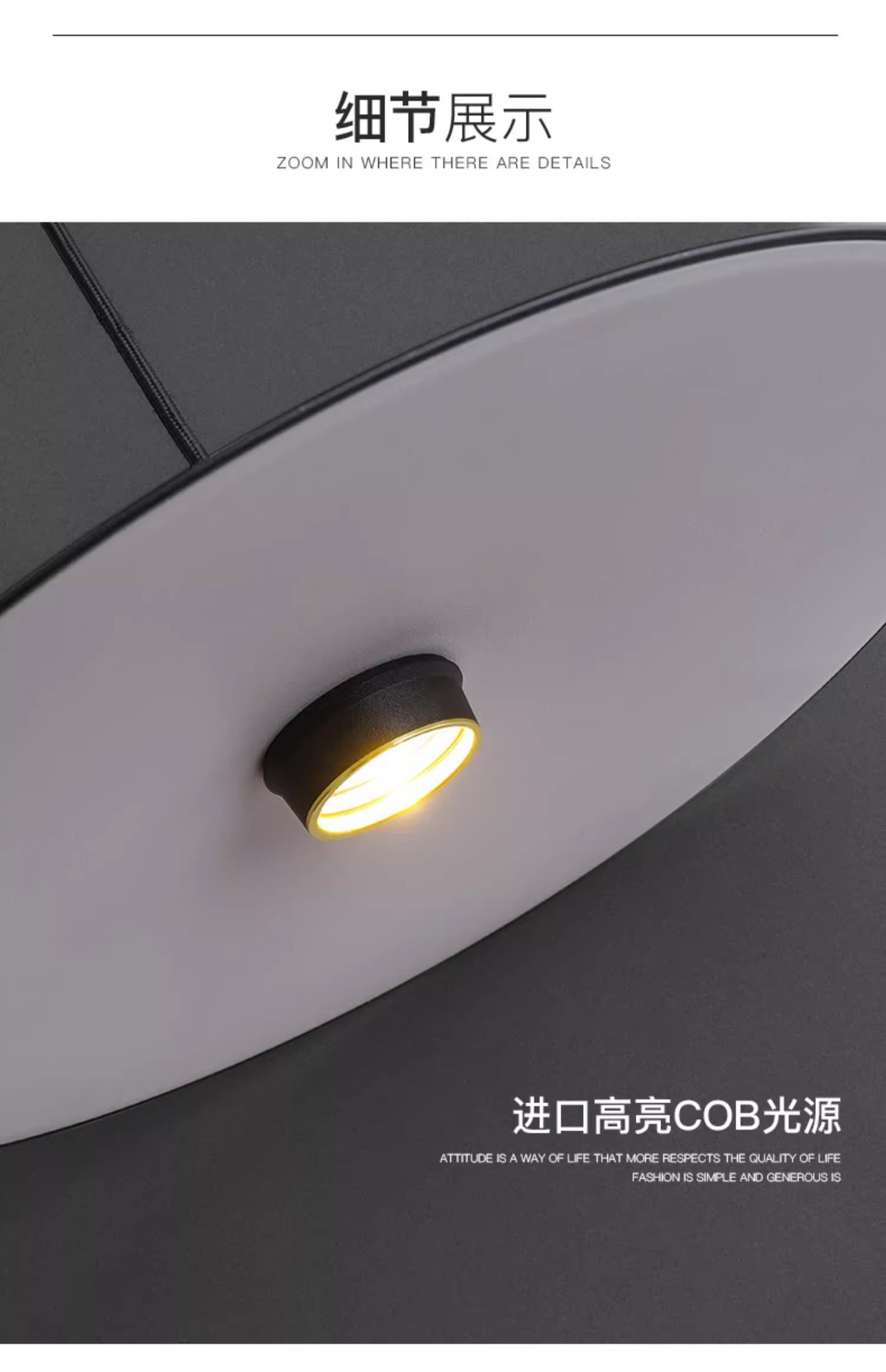 2024 새로운 미니멀리스트 레스토랑 샹들리에 현대적인 단순한 성격 창조적 인 싱글 헤드 COB 식탁 라운드 비행 접시 샹들리에스토어 가기