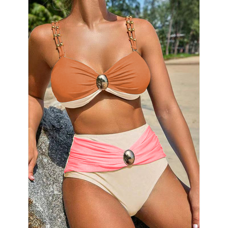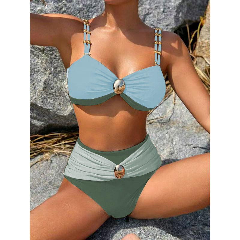 2025 유럽과 미국의 대외 무역 새로운 비키니 3 피스 세트 얼마나 많은 섹시한 수영복 여성 아마존 스플릿 단색 수영복