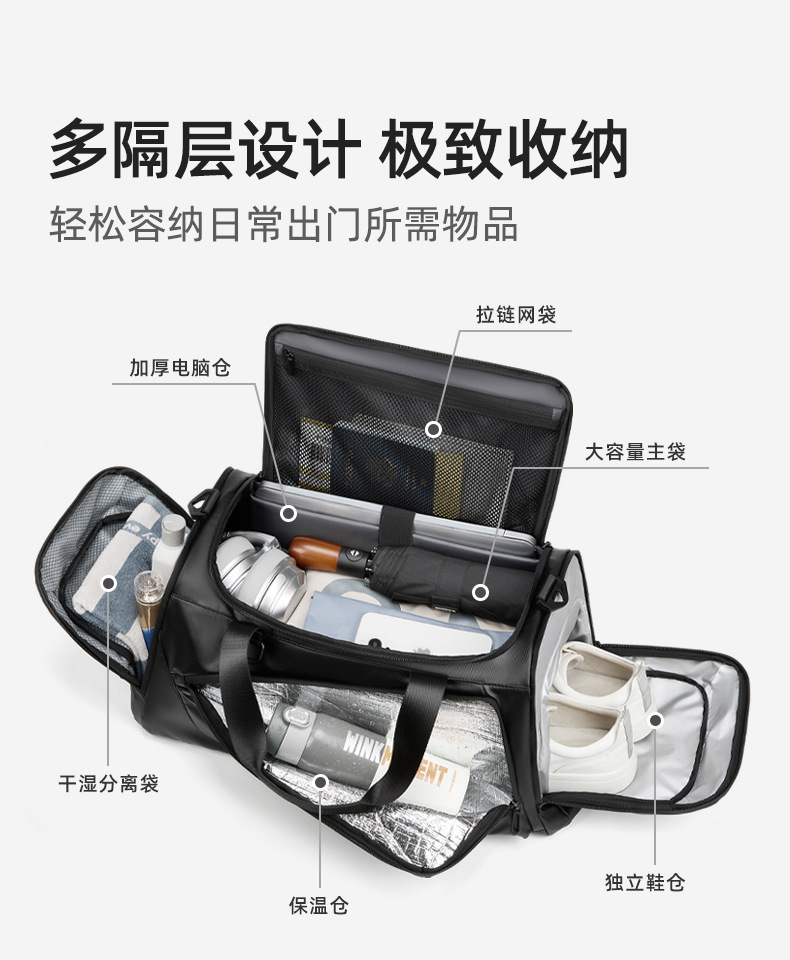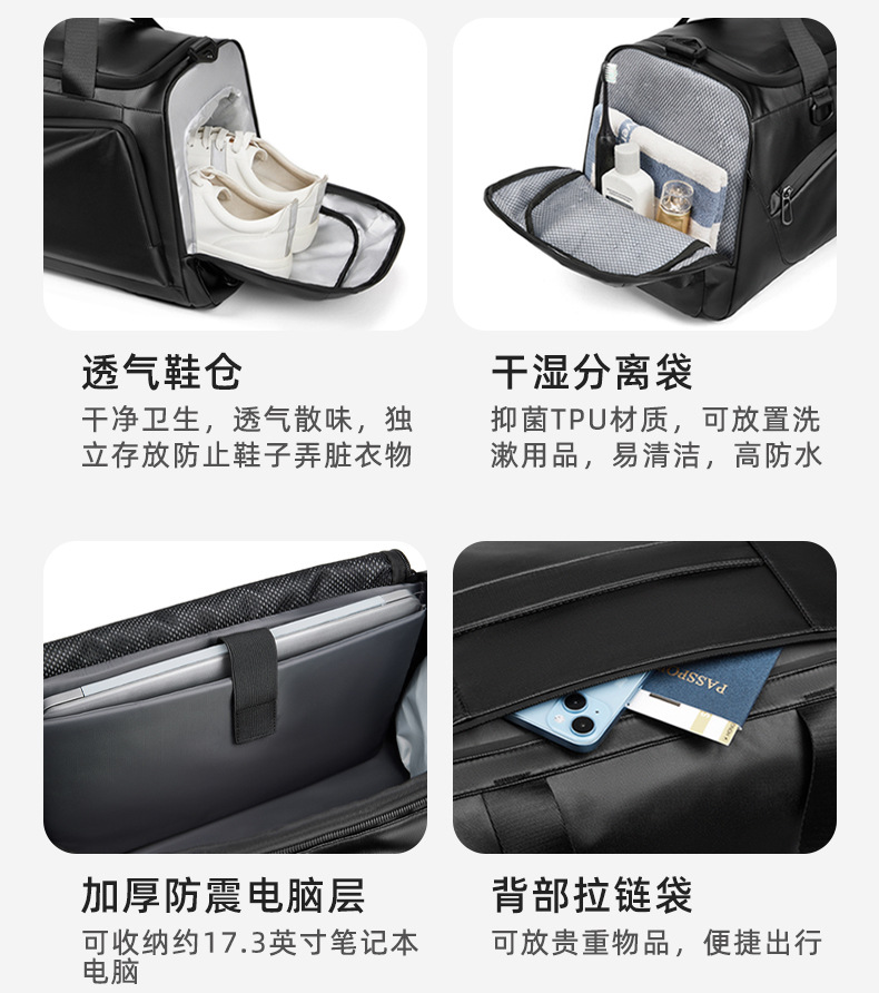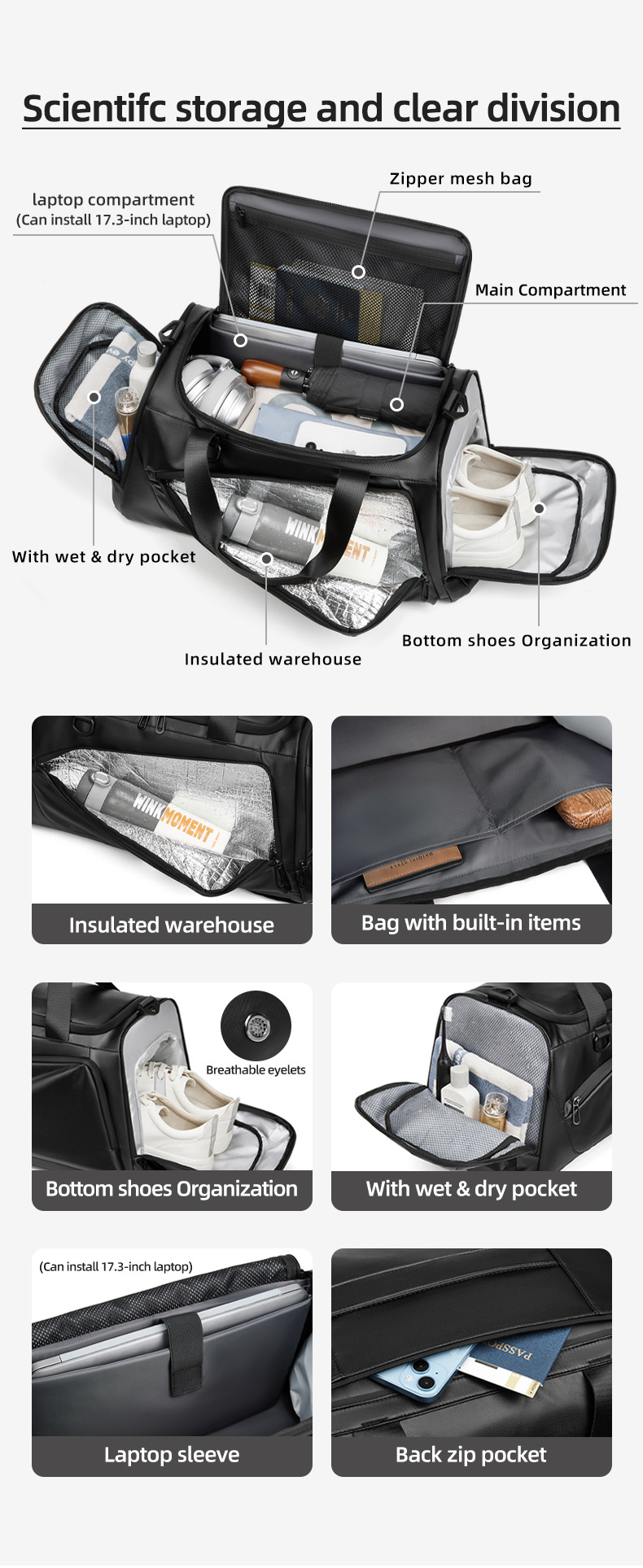 남성 여행 가방 대용량 건조하고 젖은 별도의 발수성 훈련 가방 다기능 크로스 바디 휴대용 배낭