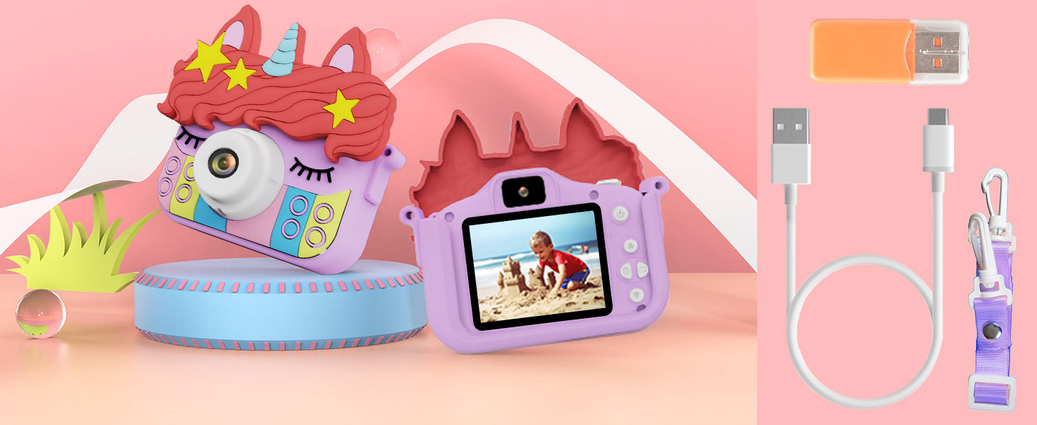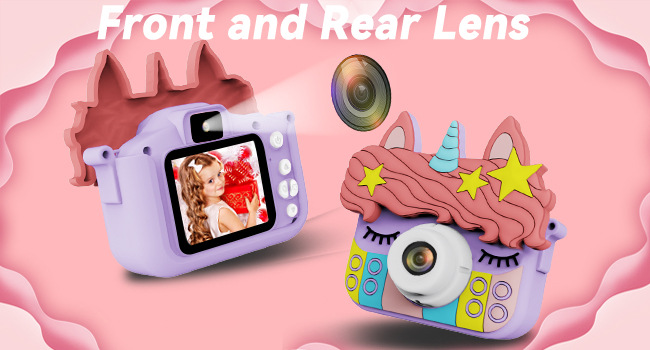 국경을 넘는 어린이용 카메라, 사진 촬영 가능, 미니 고화질 디지털 만화 유니콘 듀얼 카메라 장난감 카메라, 만화 디자인