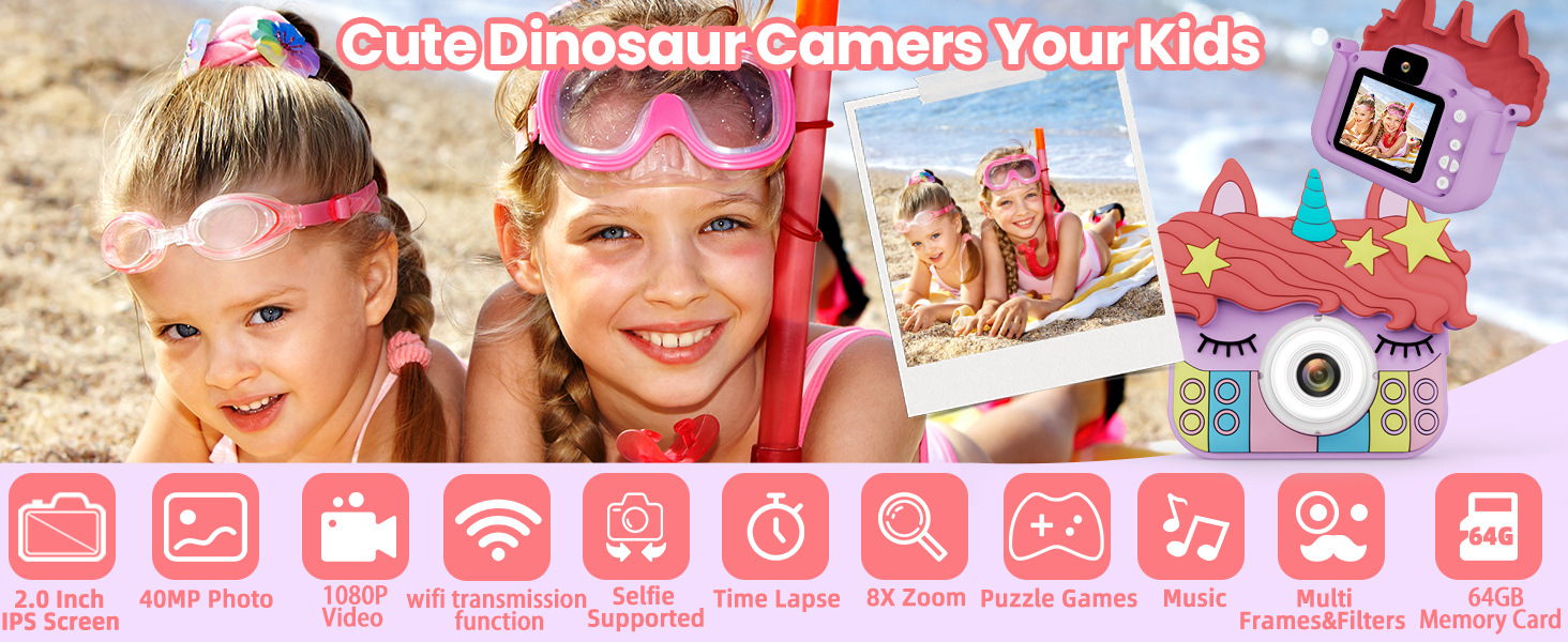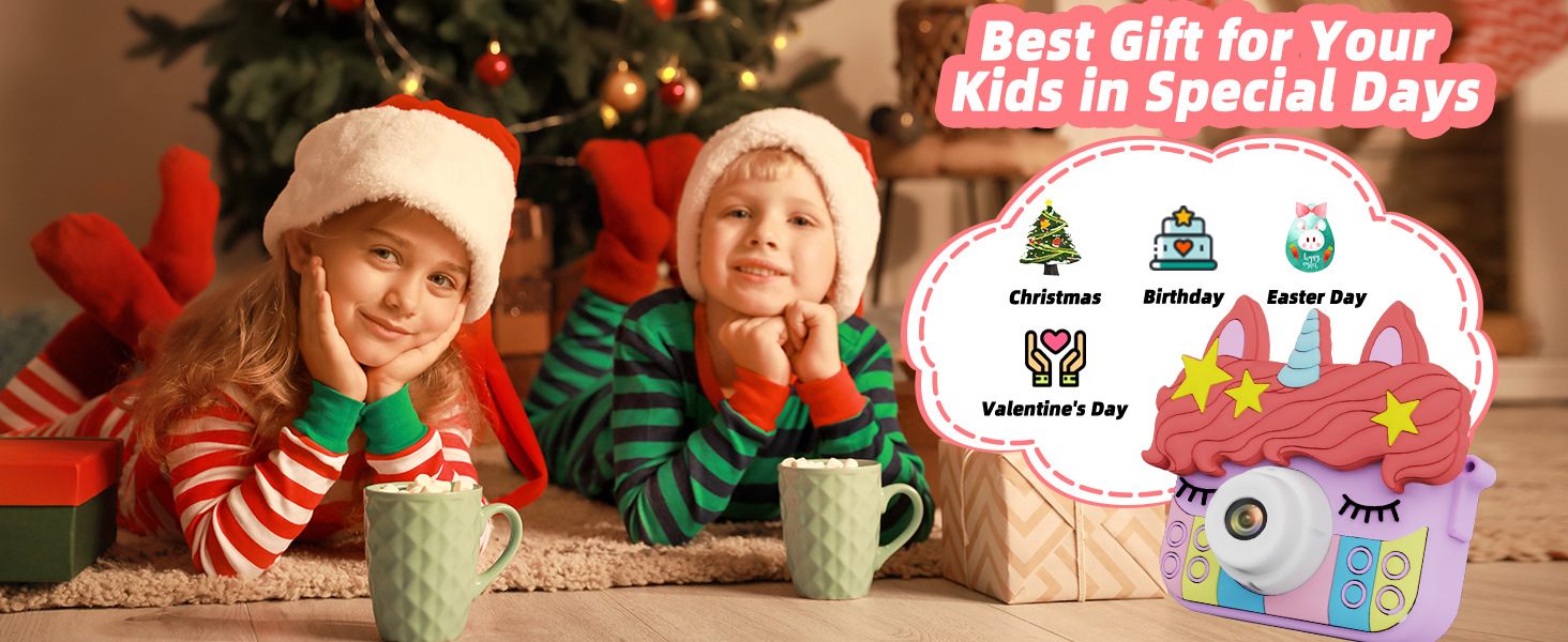 국경을 넘는 어린이용 카메라, 사진 촬영 가능, 미니 고화질 디지털 만화 유니콘 듀얼 카메라 장난감 카메라, 만화 디자인스토어 가기