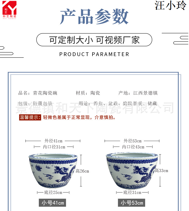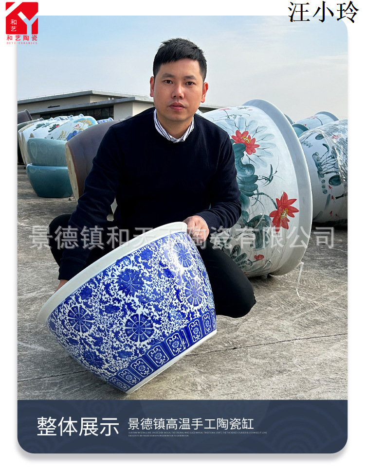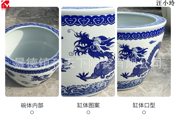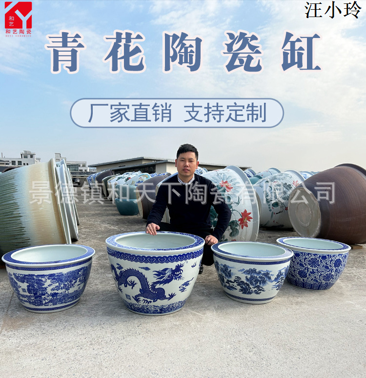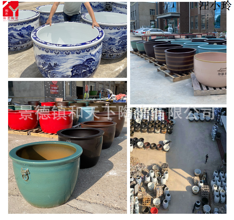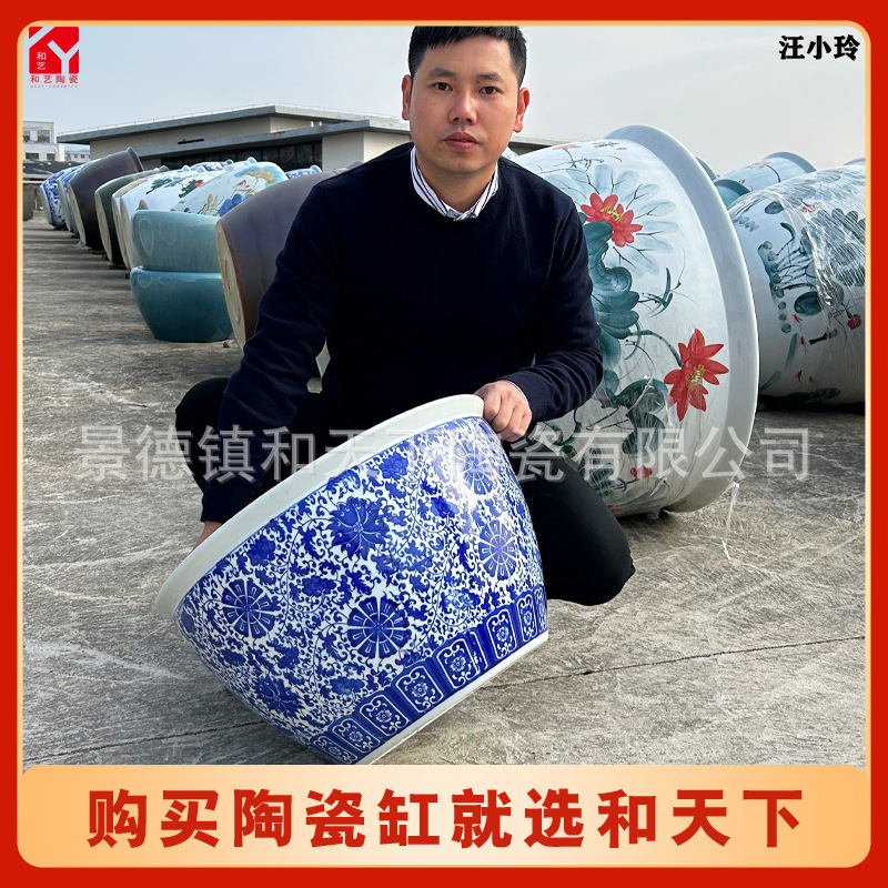 안뜰 그릇 연꽃 냄비 탱크 야외 초대형 나무 화분 탱크 1 m 물 연꽃 냄비 탱크 파란색과 흰색 세라믹 물 탱크
