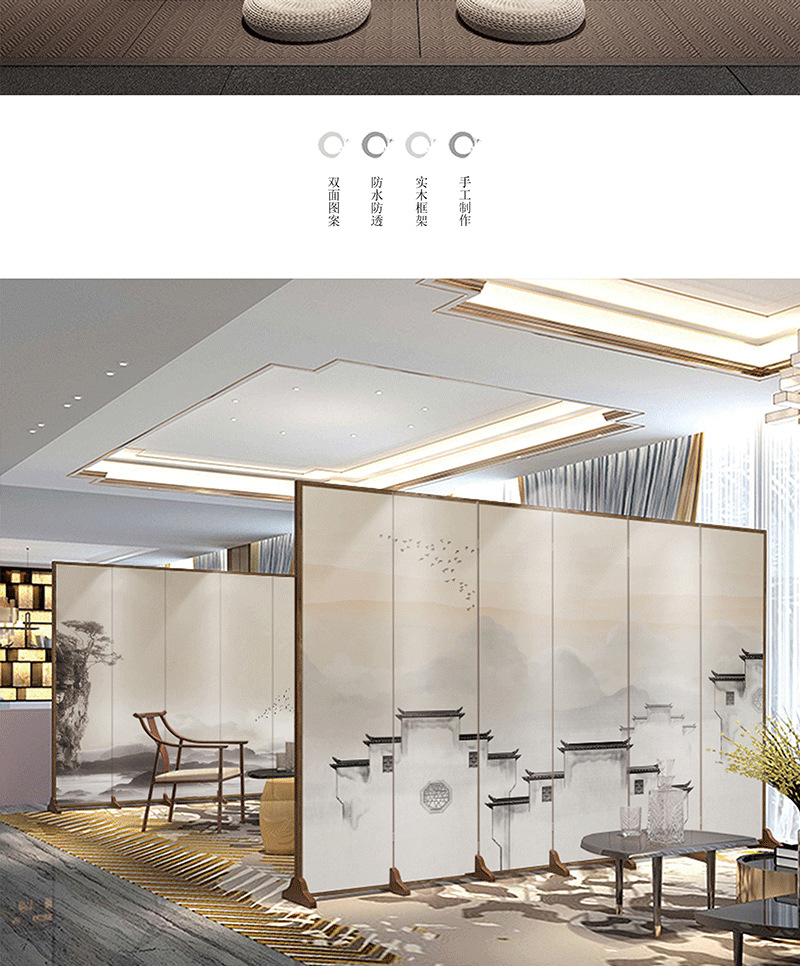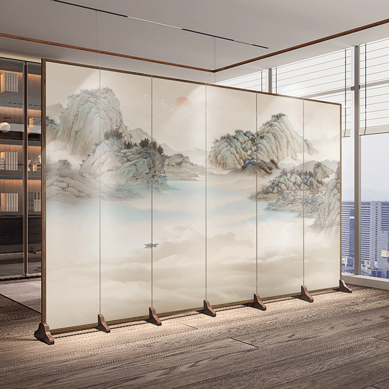 스크린 파티션 거실 입구 입구 새로운 중국 스타일 티 룸 접이식 모바일 호텔 쉼터 장식 접이식 스크린 양면