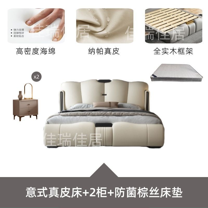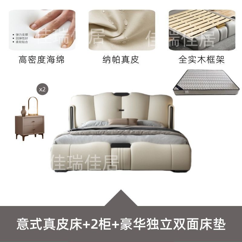 • 이탈리안 가죽 침대 + 캐비닛 2개 + 5성 소프트 탄성 매트리스