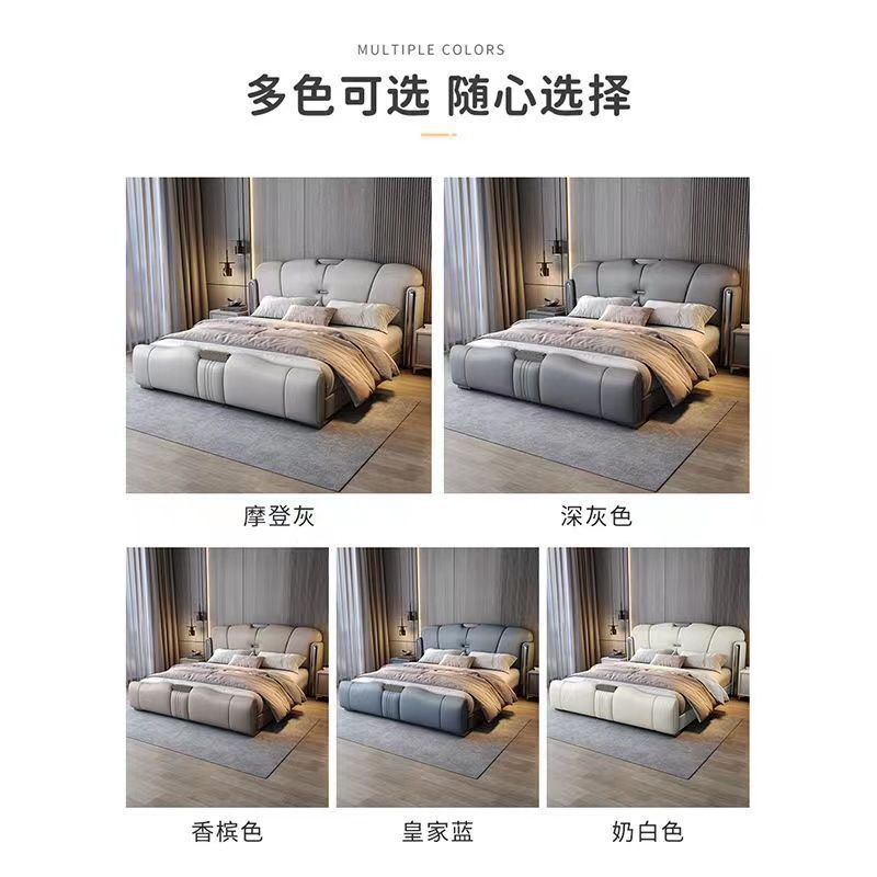 이탈리아 스타일 가벼운 고급 가죽 침대 마스터 침실 인터넷 유명 침대 현대 간단한 가죽 아트 침대 소프트 가방 보관 침대 침실 고급 웨딩 침대스토어 가기