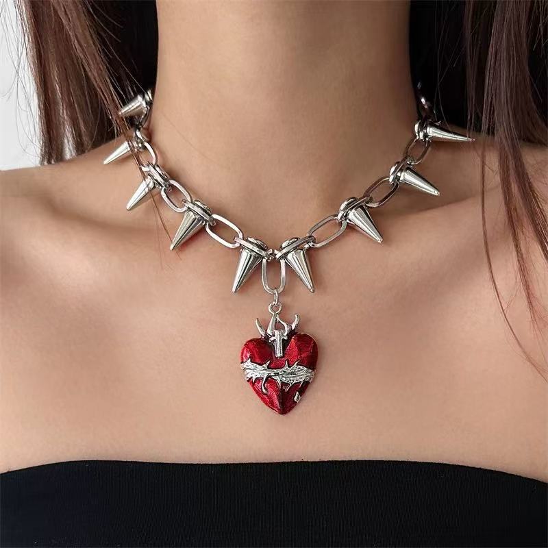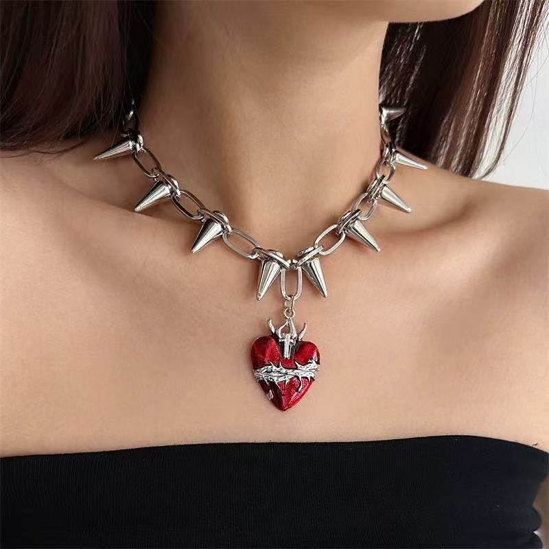 슈퍼 중공업 고급 센스 리벳 초커 레드 가시 사랑 목걸이 여성 틈새 스파이스 걸스 체인 칼라 체인 남성스토어 가기