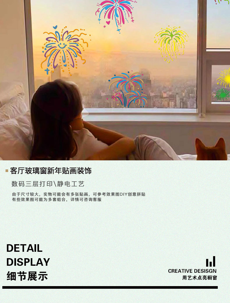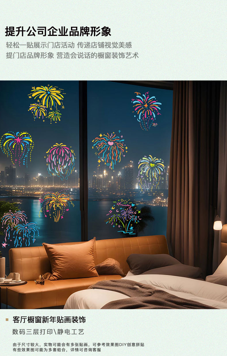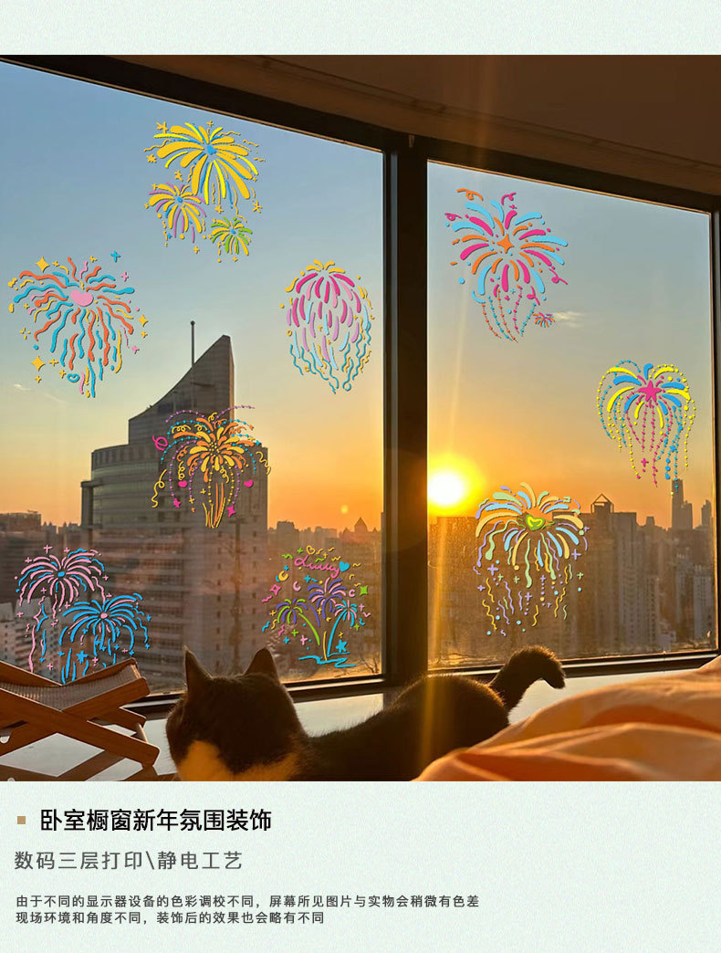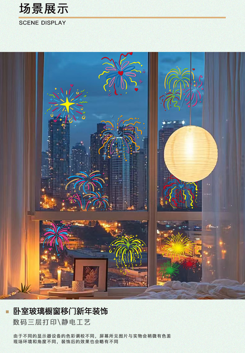 2026년 새해 유리 스티커 불꽃놀이 분위기 장식 말의 해 문 장식 스티커 춘절 전자식 창문 장식 스티커