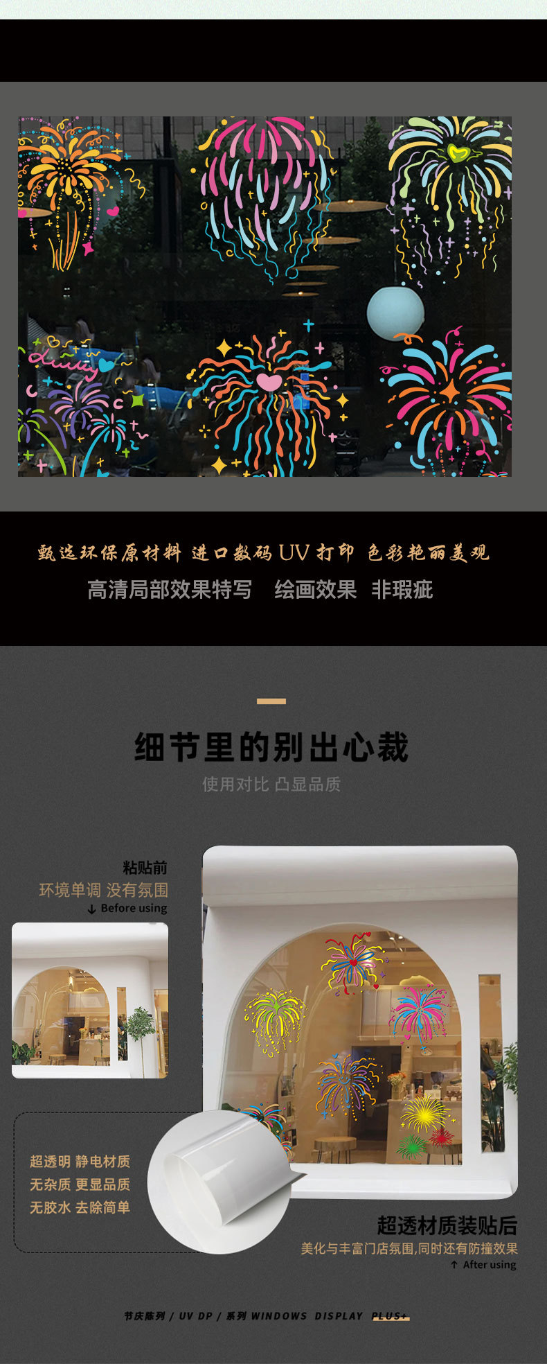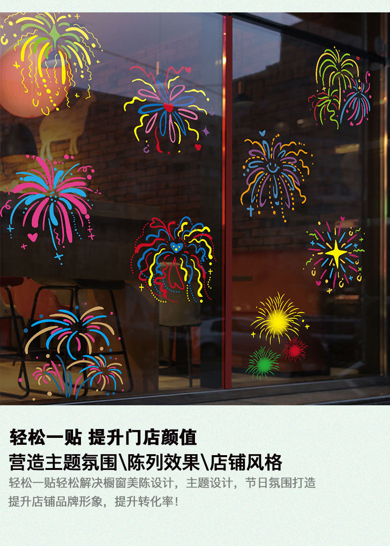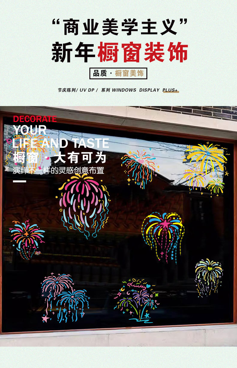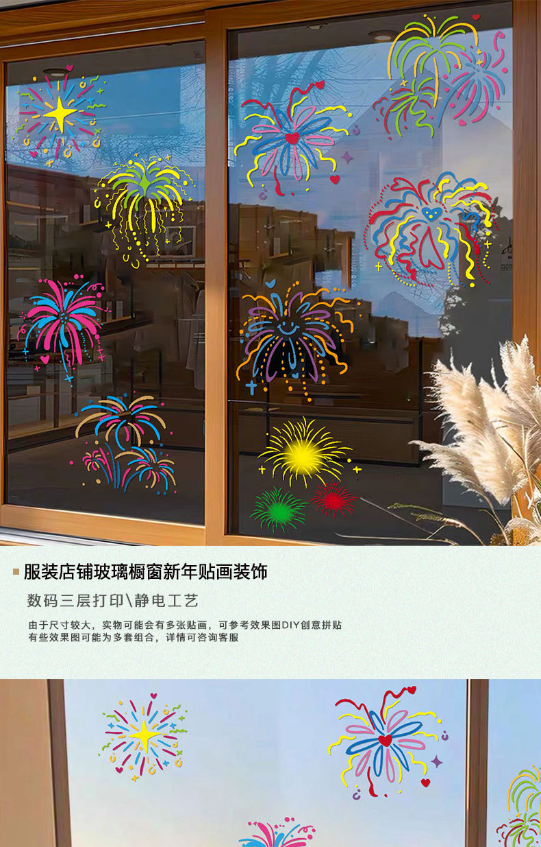 2026년 새해 유리 스티커 불꽃놀이 분위기 장식 말의 해 문 장식 스티커 춘절 전자식 창문 장식 스티커