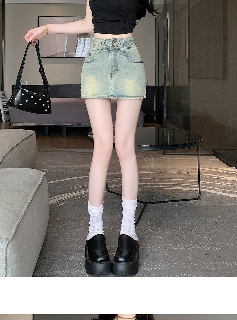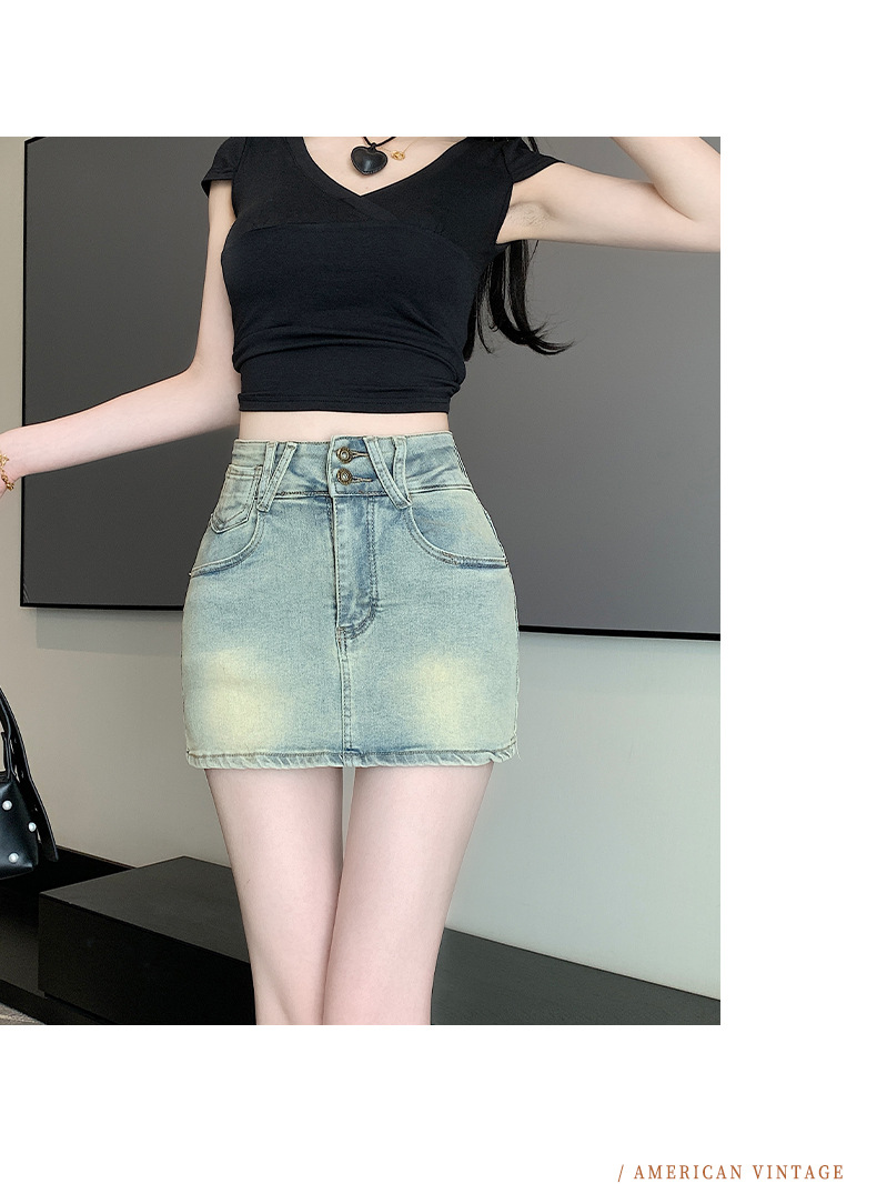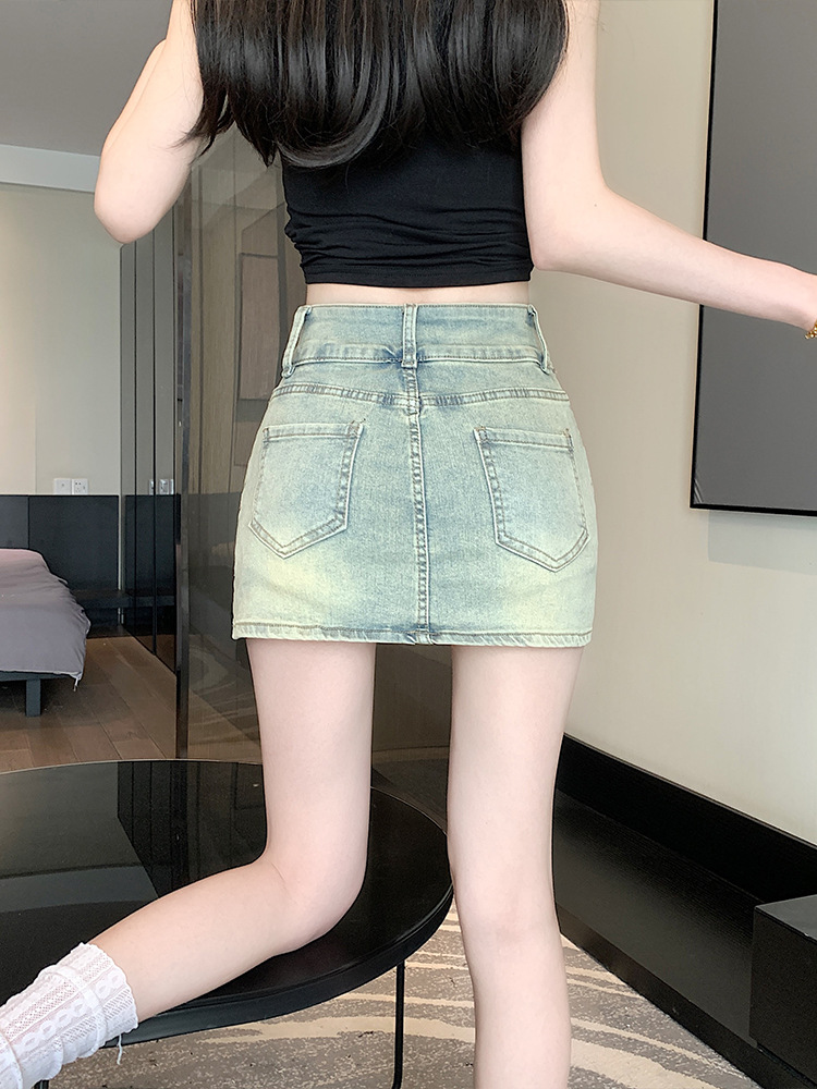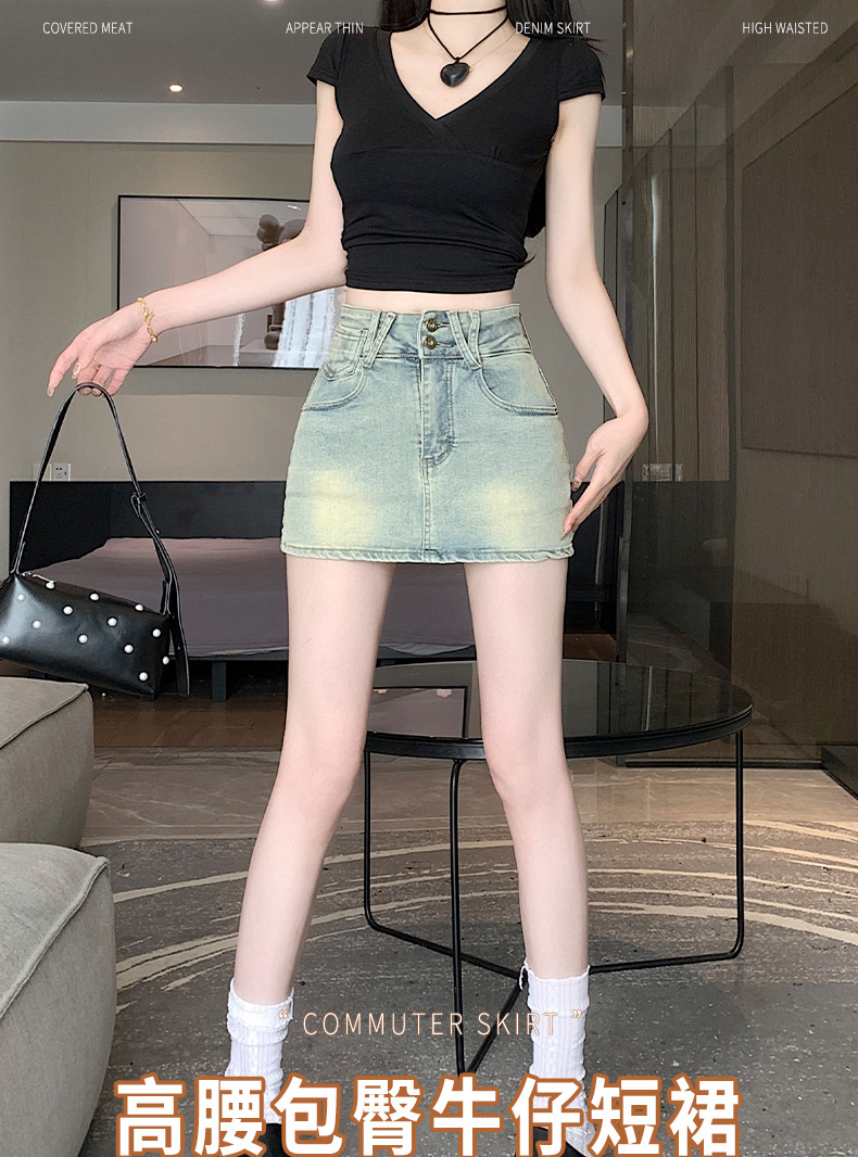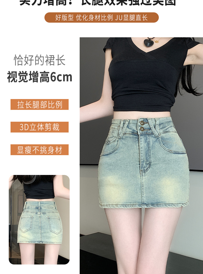 높은 허리 엉덩이 데님 스커트 여성 스파이스 소녀 2025 여름 작은 슬림 플러스 사이즈 안티 워킹 스커트스토어 가기