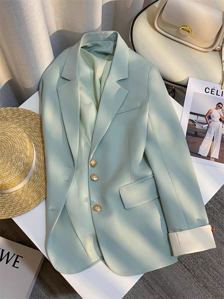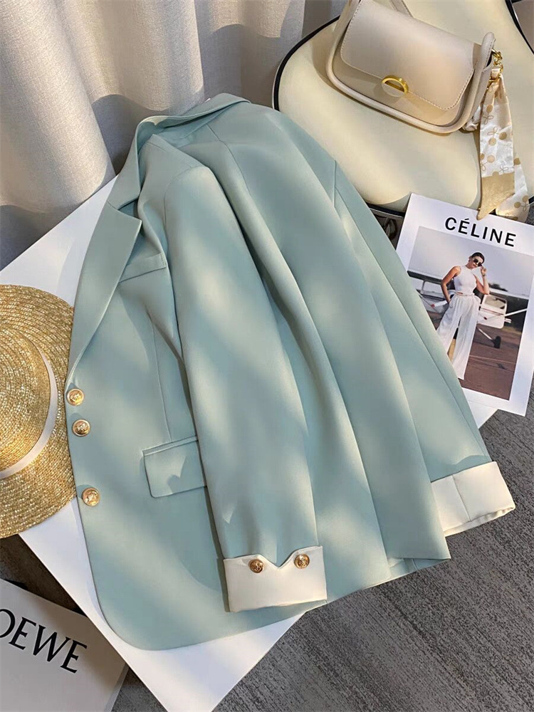 로얄 블루 세트 재킷 여성의 봄 새로운 높은 디자인 센스 재킷 유행 우아한 통근 캐주얼 작은 세트