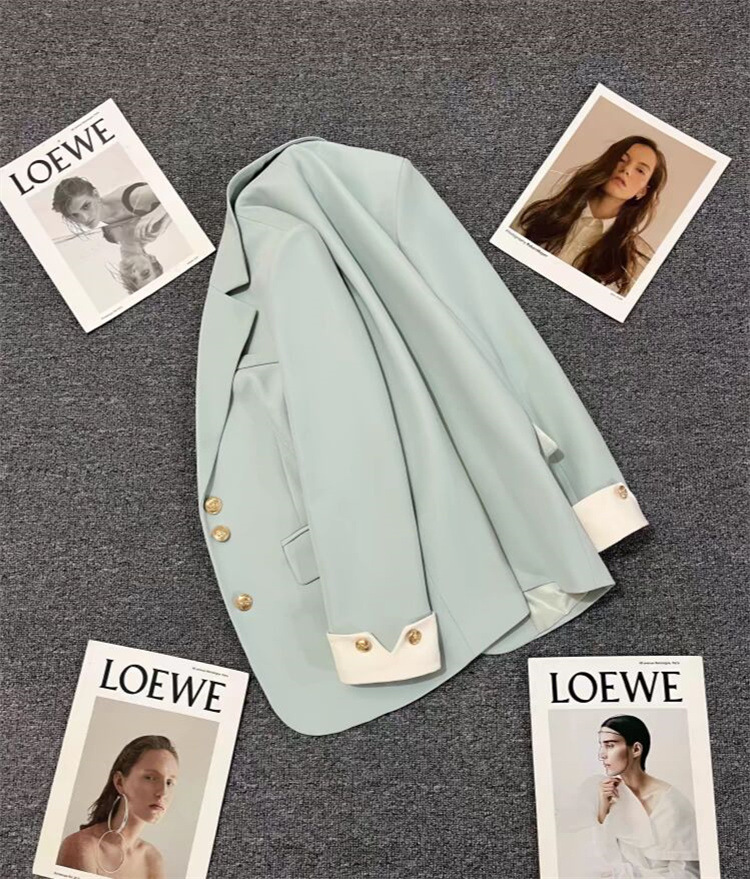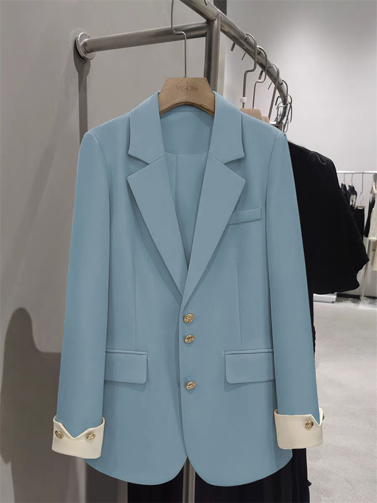 로얄 블루 세트 재킷 여성의 봄 새로운 높은 디자인 센스 재킷 유행 우아한 통근 캐주얼 작은 세트스토어 가기
