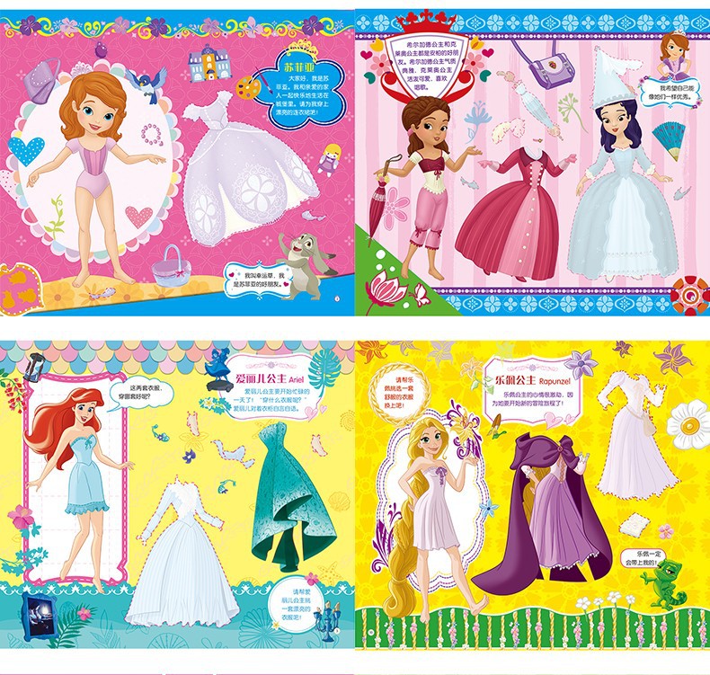 어린이 집중 훈련 스티커 책 변경 원피스 쇼 공주 소녀 만화 스티커 책 3-6 세 5 조기 교육