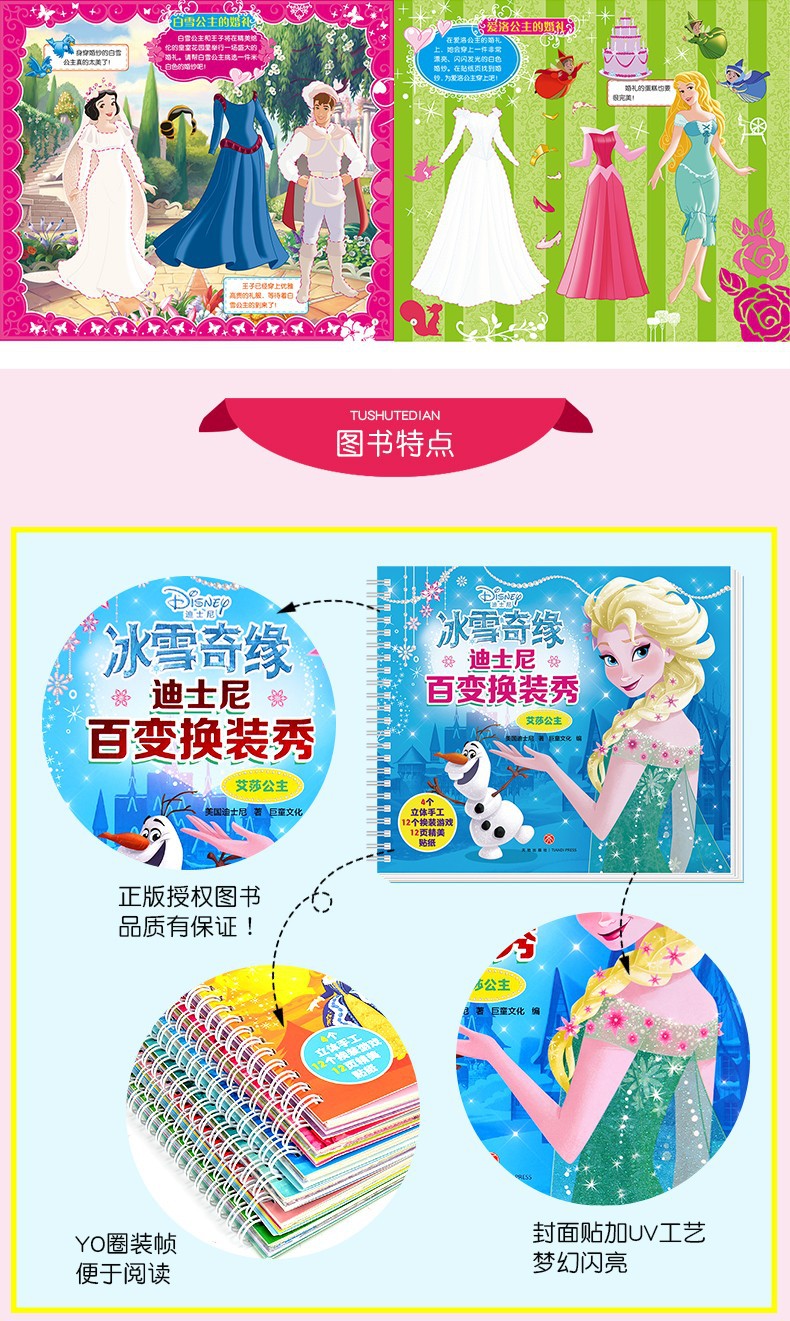 다양한 의상을 입은 공주 어린이 집중력 훈련 스티커북 소녀 만화 스티커북 3-6세 조기교육