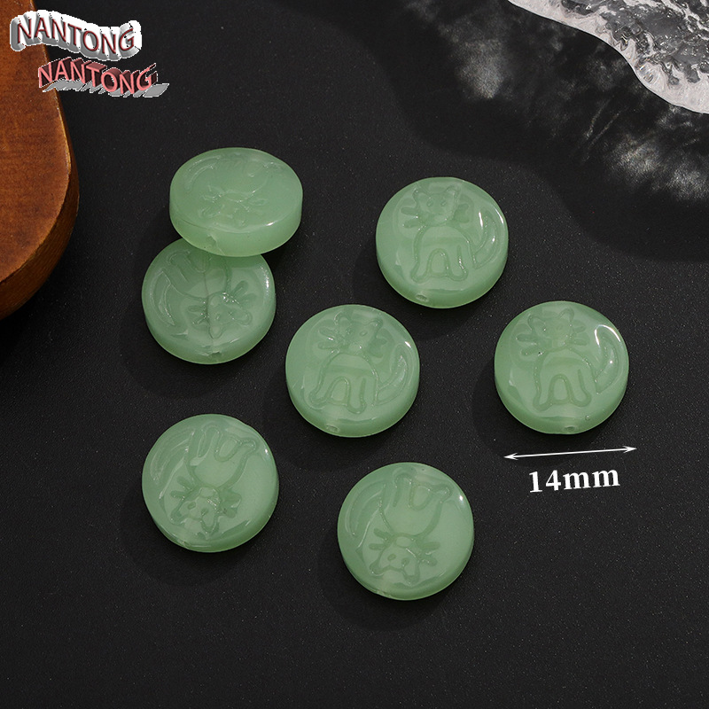 • 29 라이트 그린 캣 라운드 스페이서 비즈 14mm