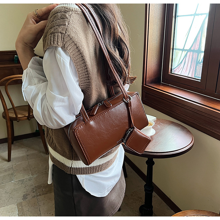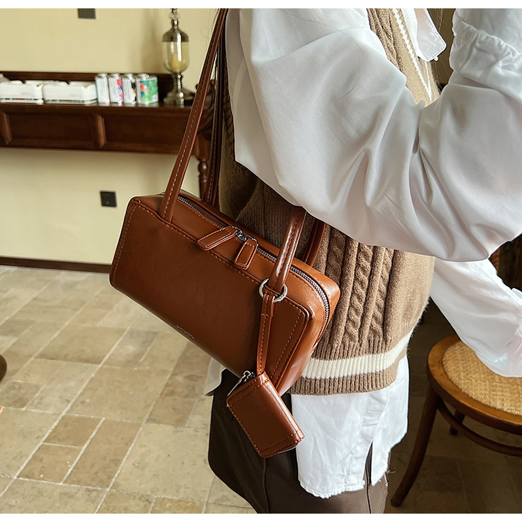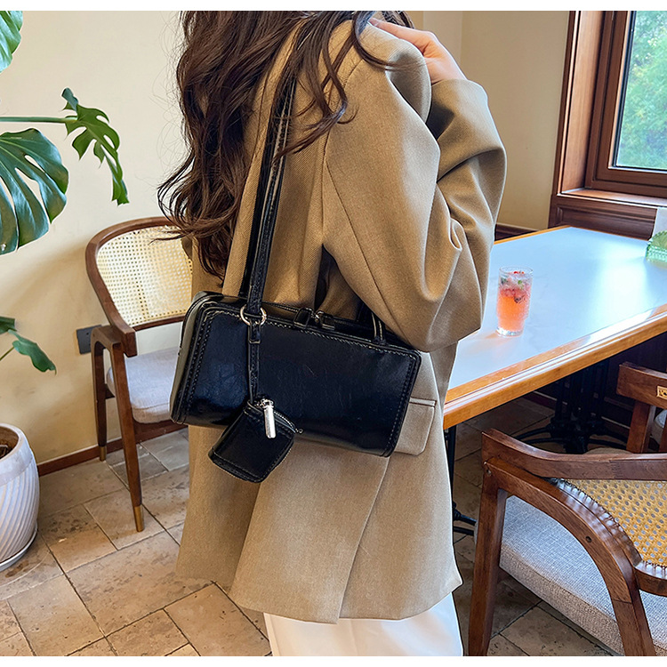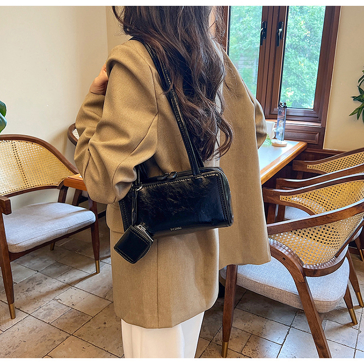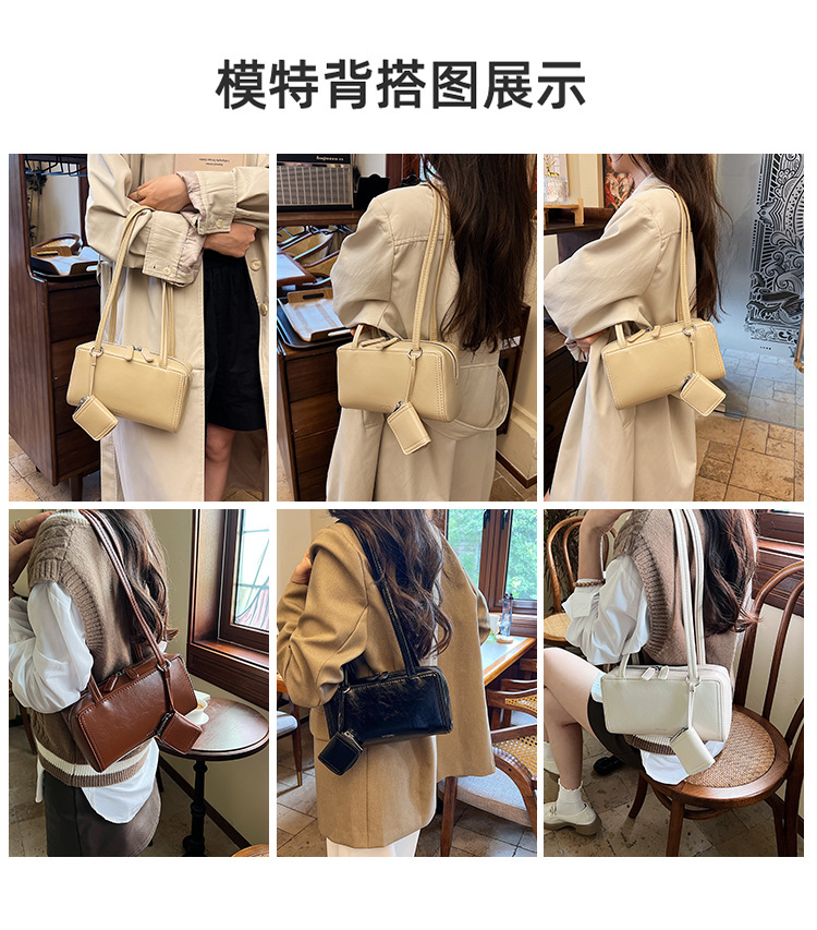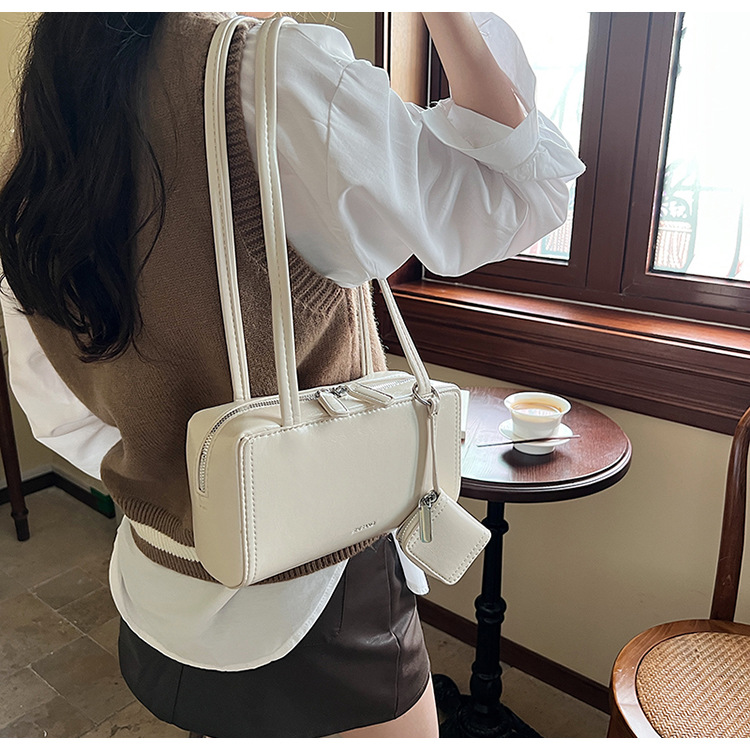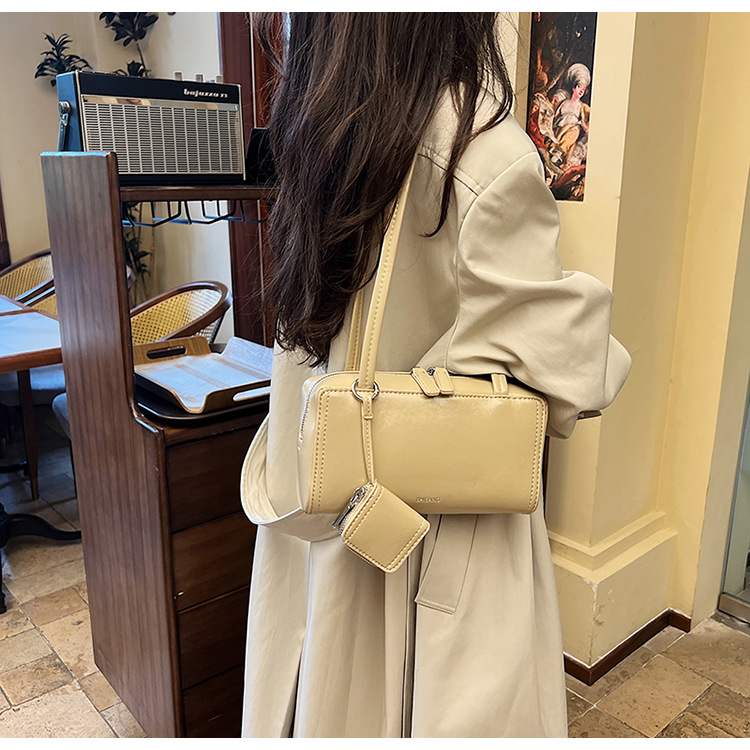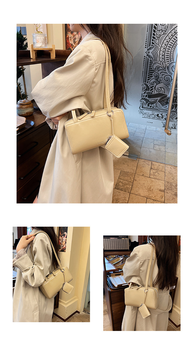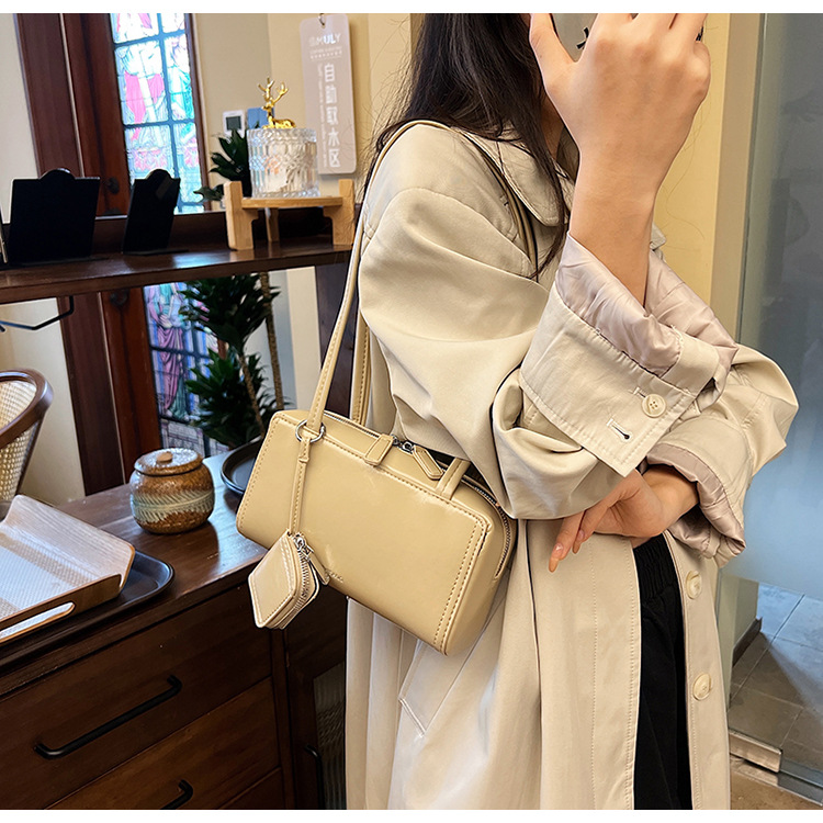 한국 스타일의 우아한 단색 속옷 가방 여자 2025 봄 간단한 유행 어깨 가방 통근 모든 경기 보스턴 가방스토어 가기