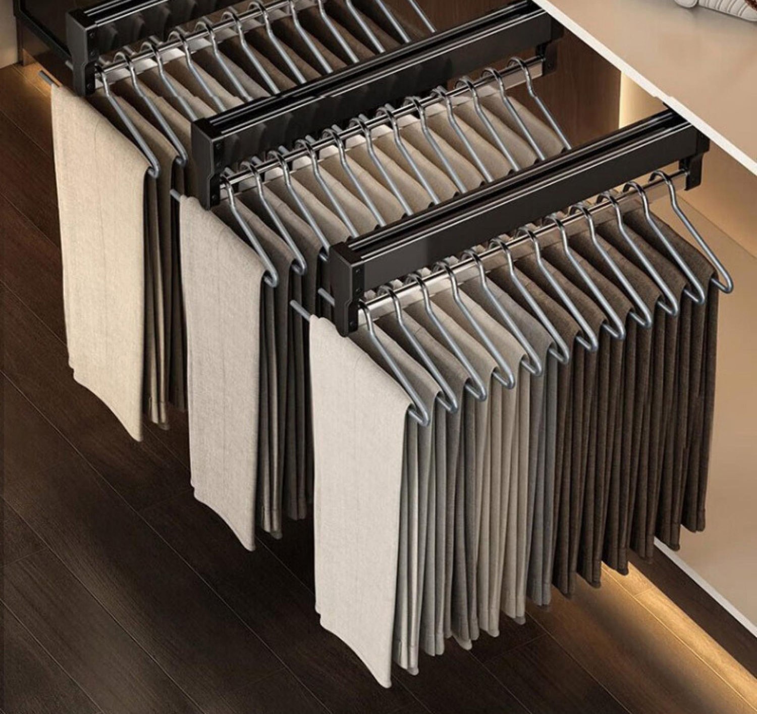거위 모양의 바지 랙 낮은 옷장 홈 스토리지 2 자 트랙 교수형 바지 백조 목 바지 옷걸이스토어 가기