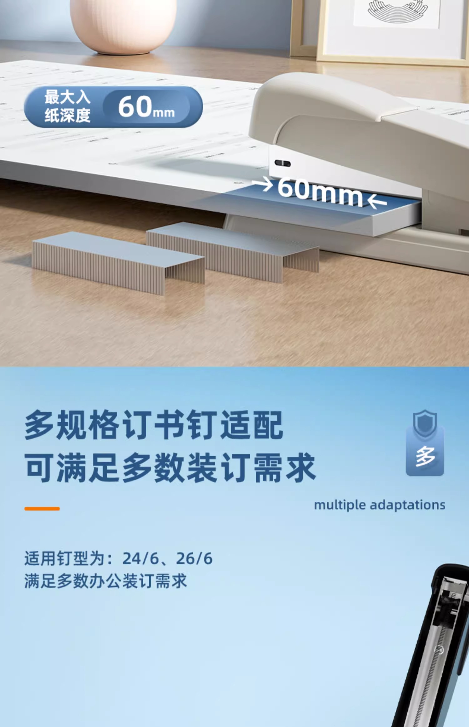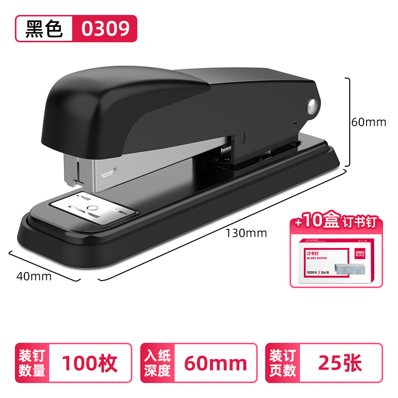 델리 문구 0309 스테이플러 표준 대형 스몰 사이즈 두꺼운 층 사무실 비즈니스 화이트 칼라 공급 노동 절약 책