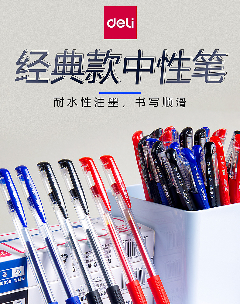 델리 6600ES 중립 펜 박스 워터 펜 블랙 워터 기반 시그니처 펜 카본 펜 매끄러운 물 펜 사무실 도매스토어 가기